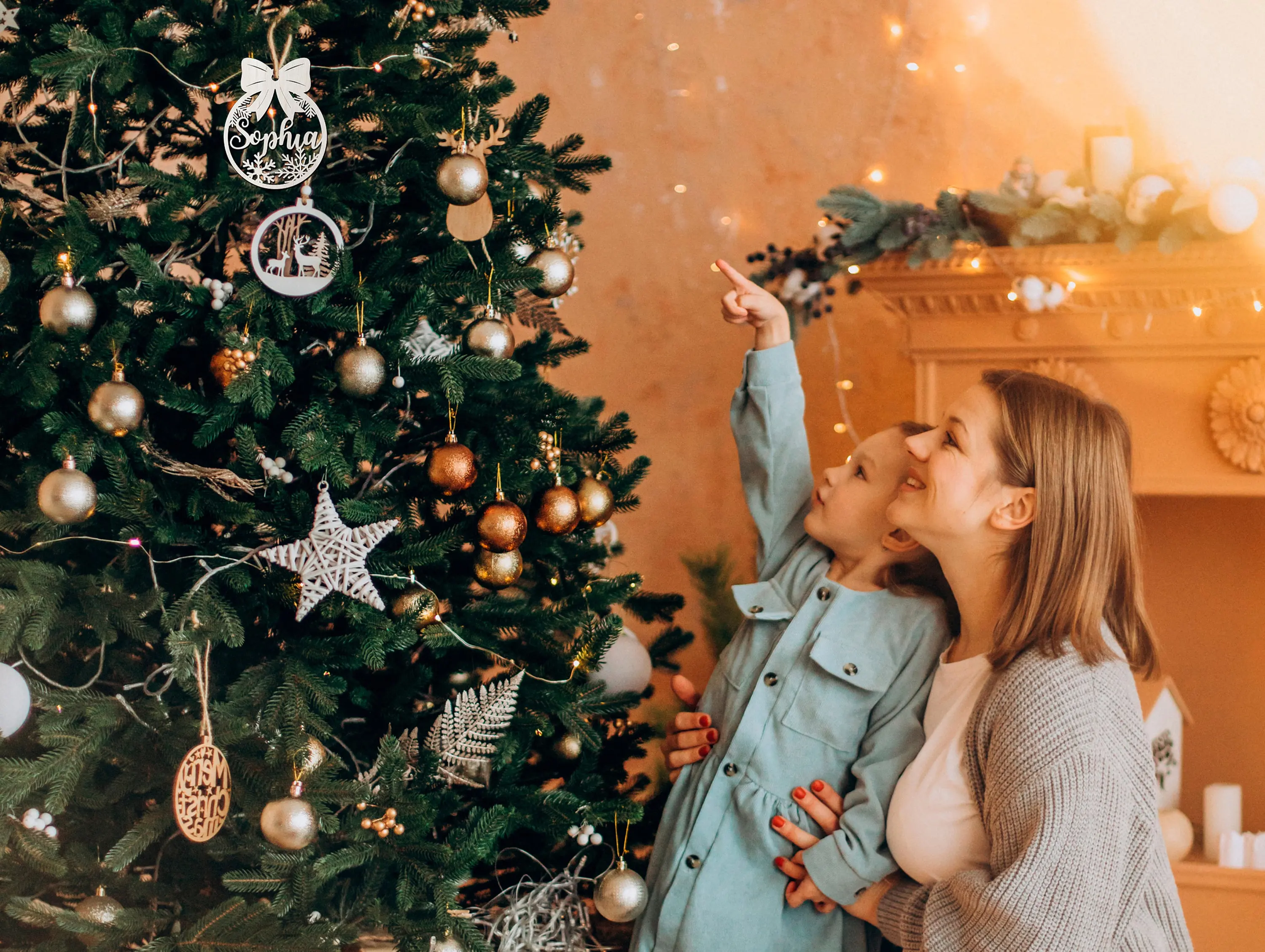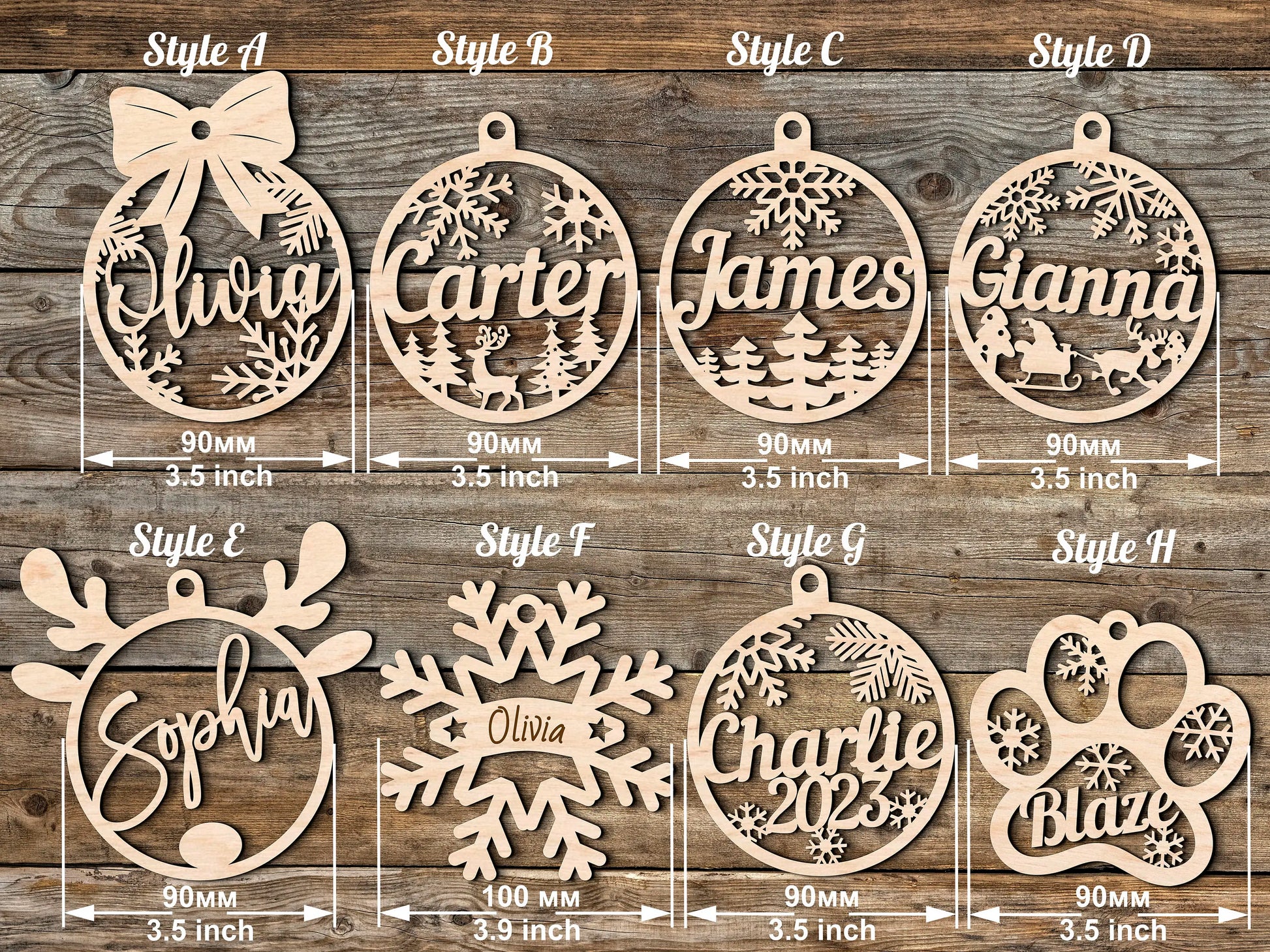 Light Custom Wood Xmas Decor Laser Cutting Name Christmas Ornaments Custom Gift Tags Custom Family Name Christmas Sign