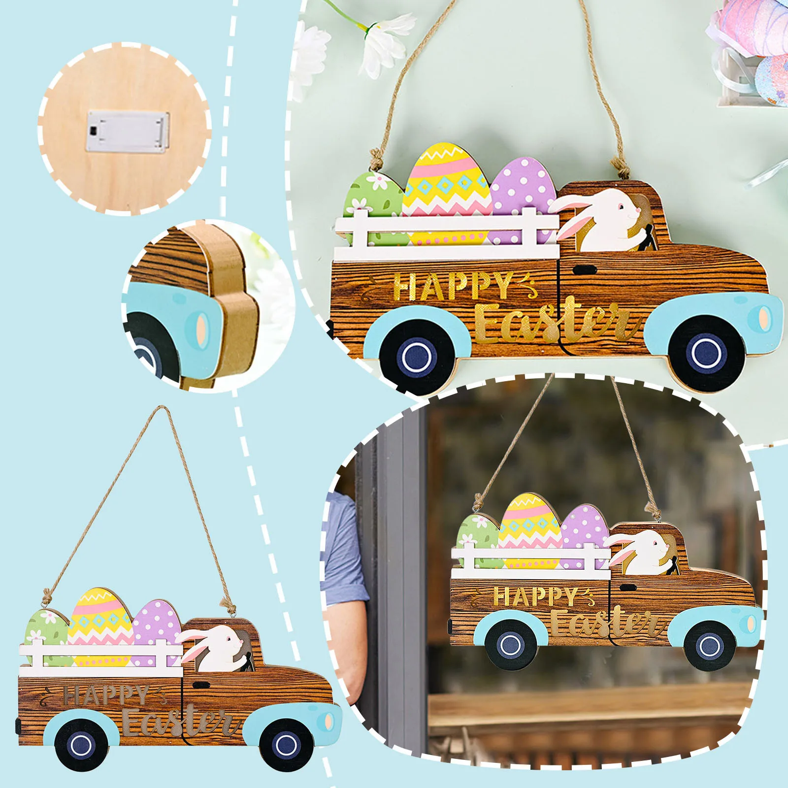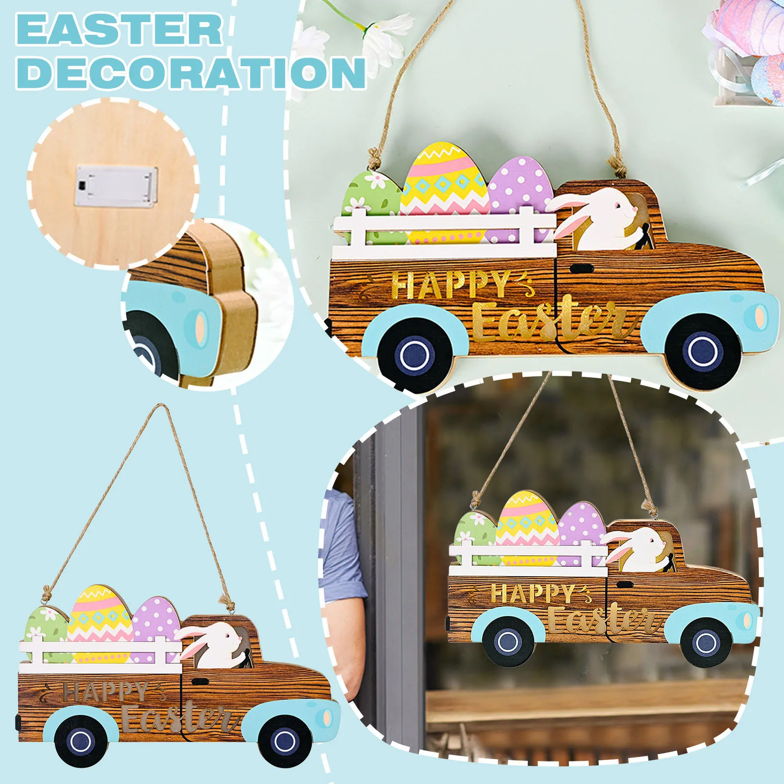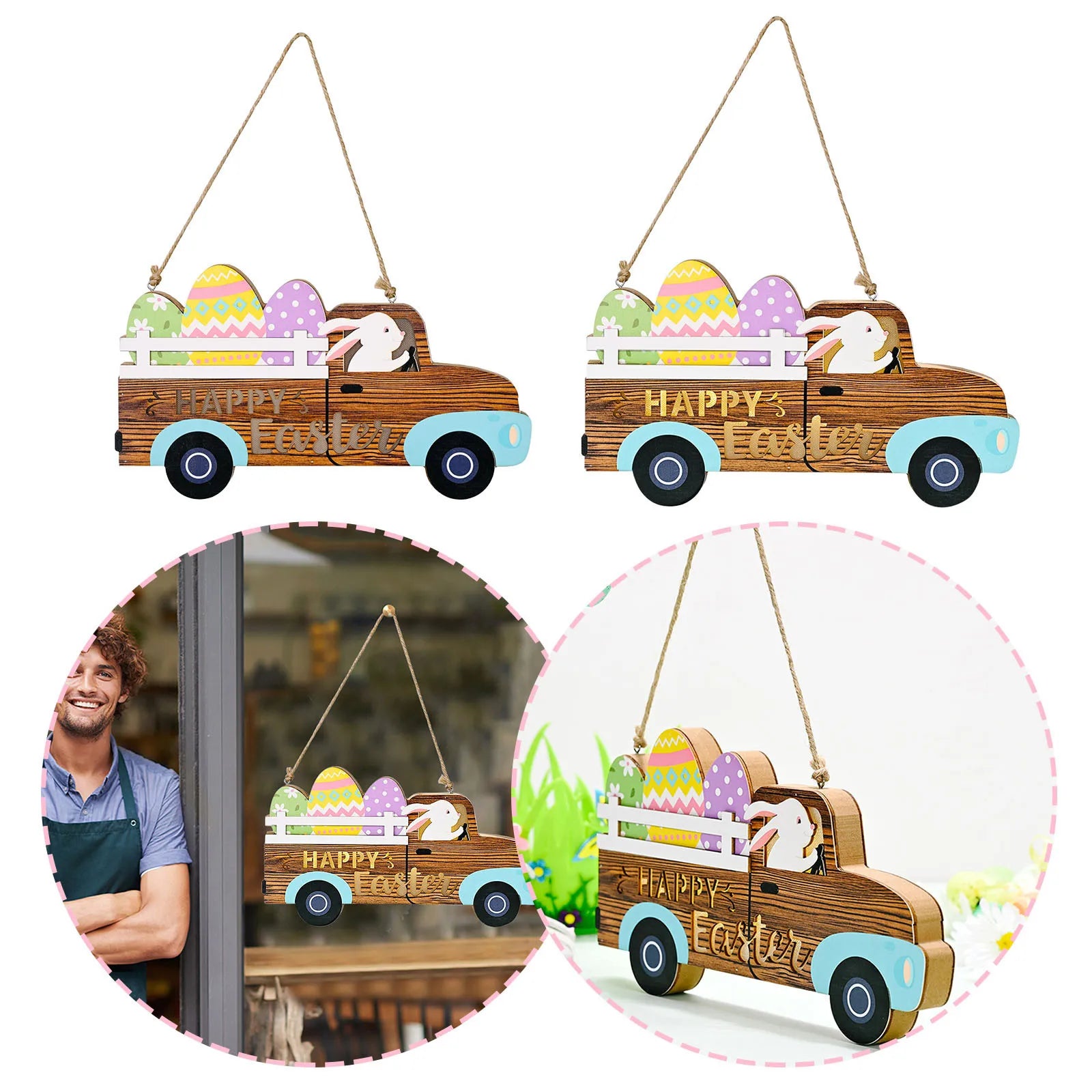 Easter Decoration Wooden Car Egg Bunny Easter Home Decor