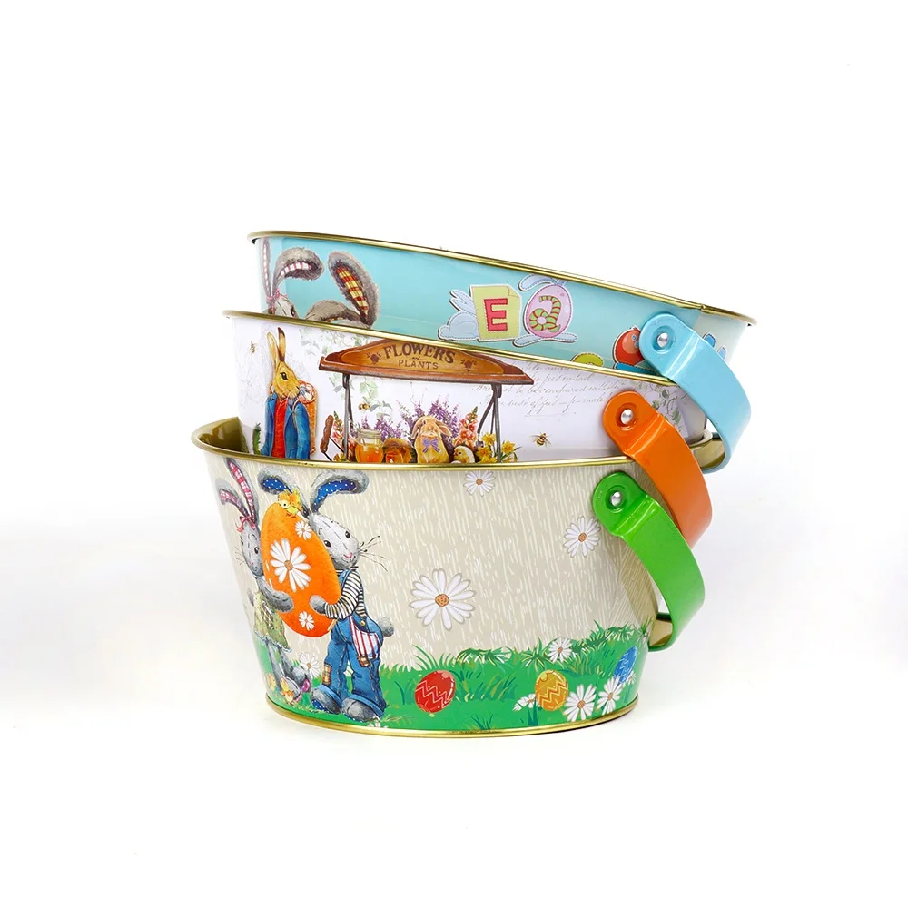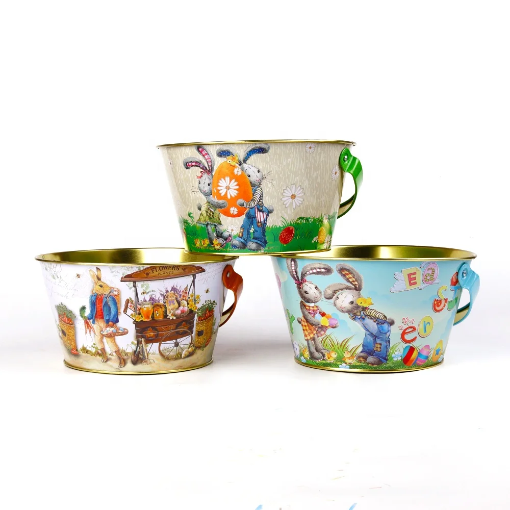 Easter and Thanksgiving 3 Kids Canvas Cotton Carry Gifts and Egg Hunting Bag Fluffy Tail Printed Rabbit Canvas Toys Easter Bunny Bucket