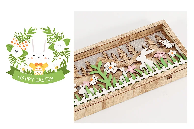 Easter and Thanksgiving 3 Original Wholesale Easter wood carving Wooden photo frame Easter bunny Easter wooden decoration