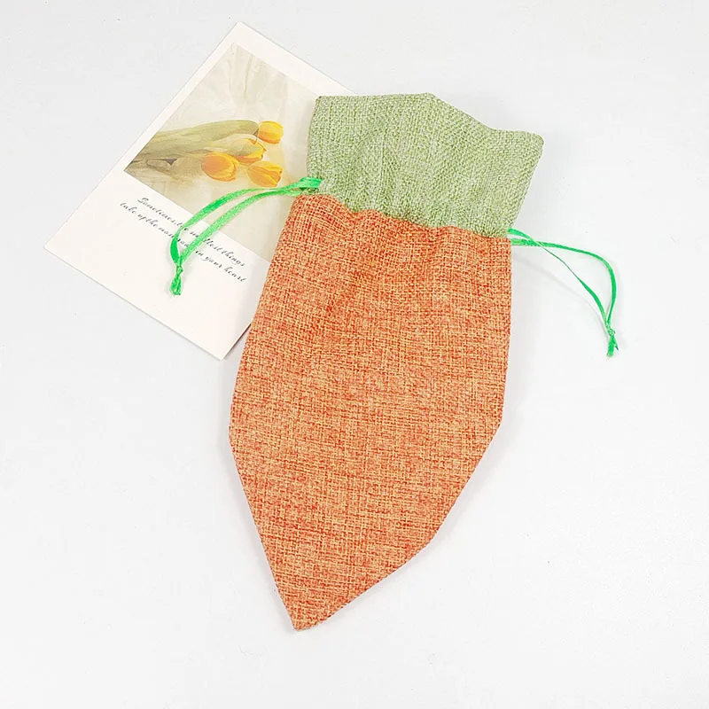 Personalized Spring Shop Easter Fabric Carrot Shaped Drawstring Gift Bags Reusable Linen Gift Bags Small Carrot Burlap Gift Bags