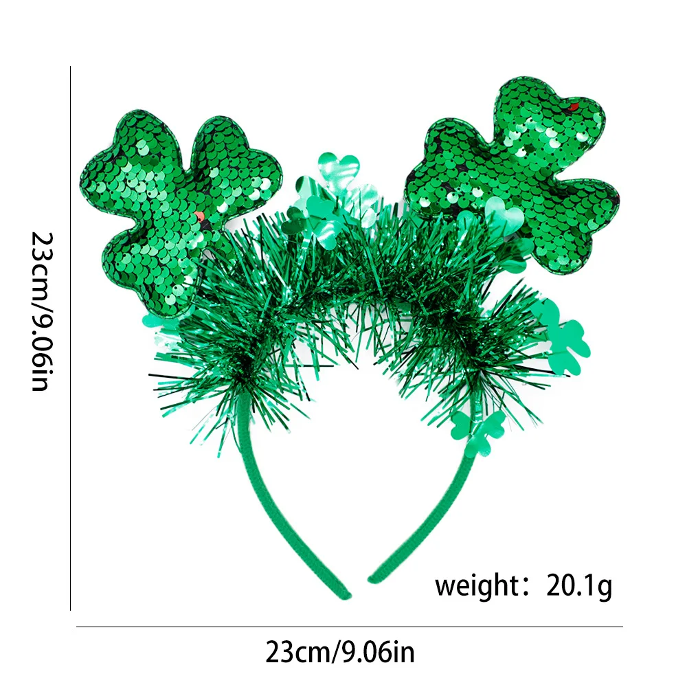 St. Patrick's Day Glittery Headbands Party Accessories Green Clover Foil Strips St. Patrick Green Clover Foil Strips Hair Bands
