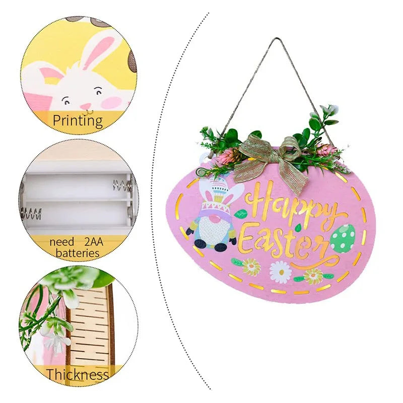 Easter & Thanksgiving 3 Decorative Doors Wall Hanging Decorative Light Emitting Diode Lighting House Label Hanging Easter Bunny Decorative Light