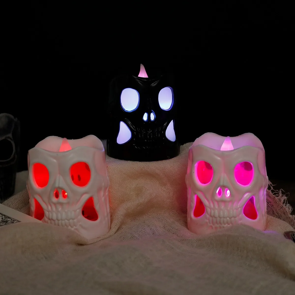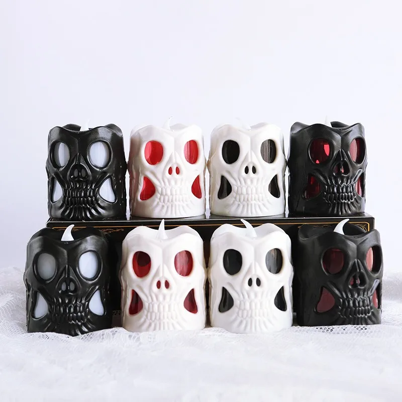 Halloween & Day of the Dead 7 * 5.5cm LED Halloween Ghost Head Lights Flame Less Skull Tea Lights for Halloween Home Party Halloween Skull Candle Lights