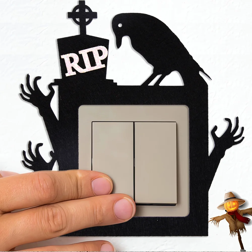 Halloween & Day of the Dead Atmosphere Home Decor Switch Sticker Bat Pumpkin Crow Skeleton Felt Cloth Switch Decorative Wall Sticker