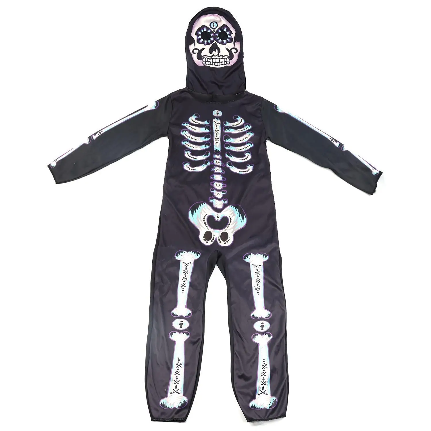 Halloween & Day of the Dead Cosplay Suit Skull Costume Jumpsuit Halloween Carnival Horror Games Halloween Full Face Hoodie Kids Skull Costume
