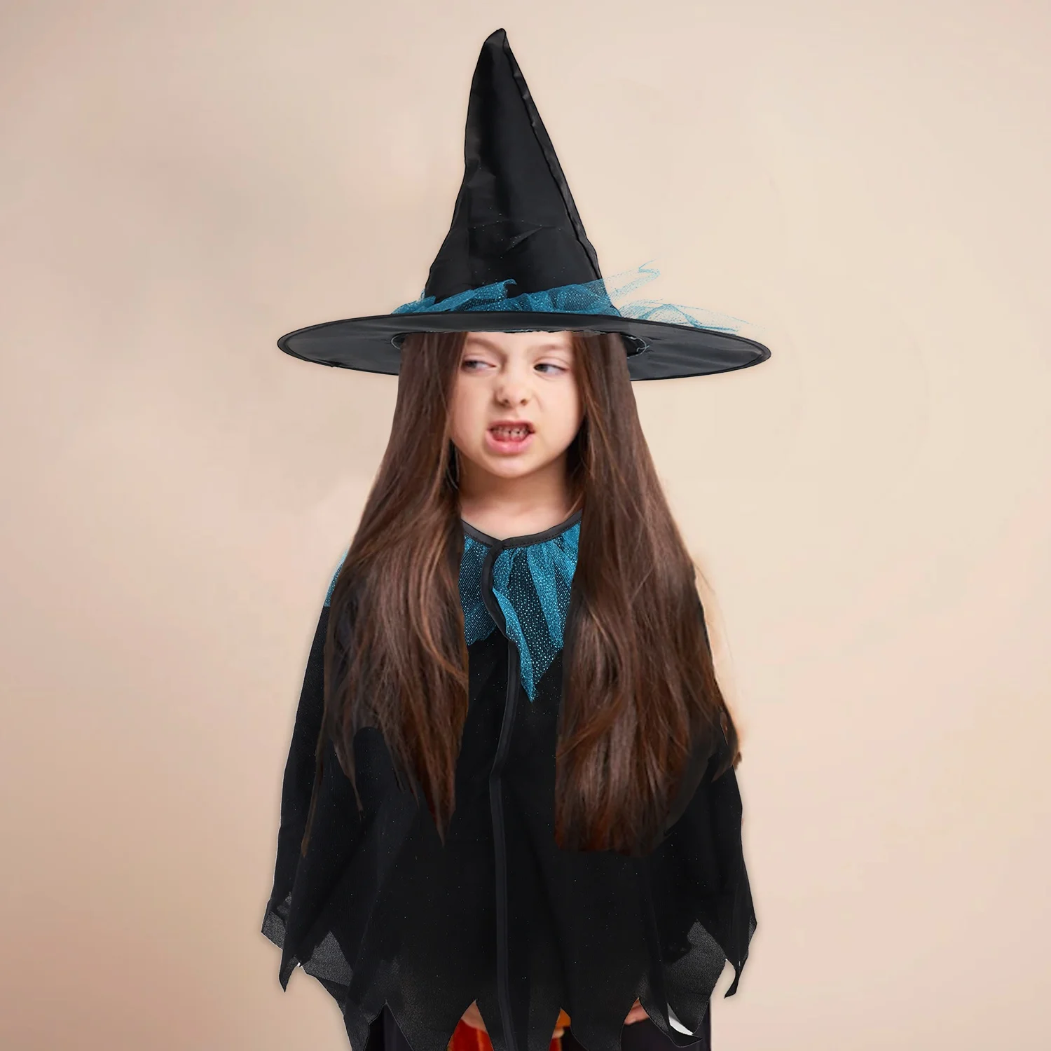 kids Black Witch Cape With Hat Flower Girl Dress Costume