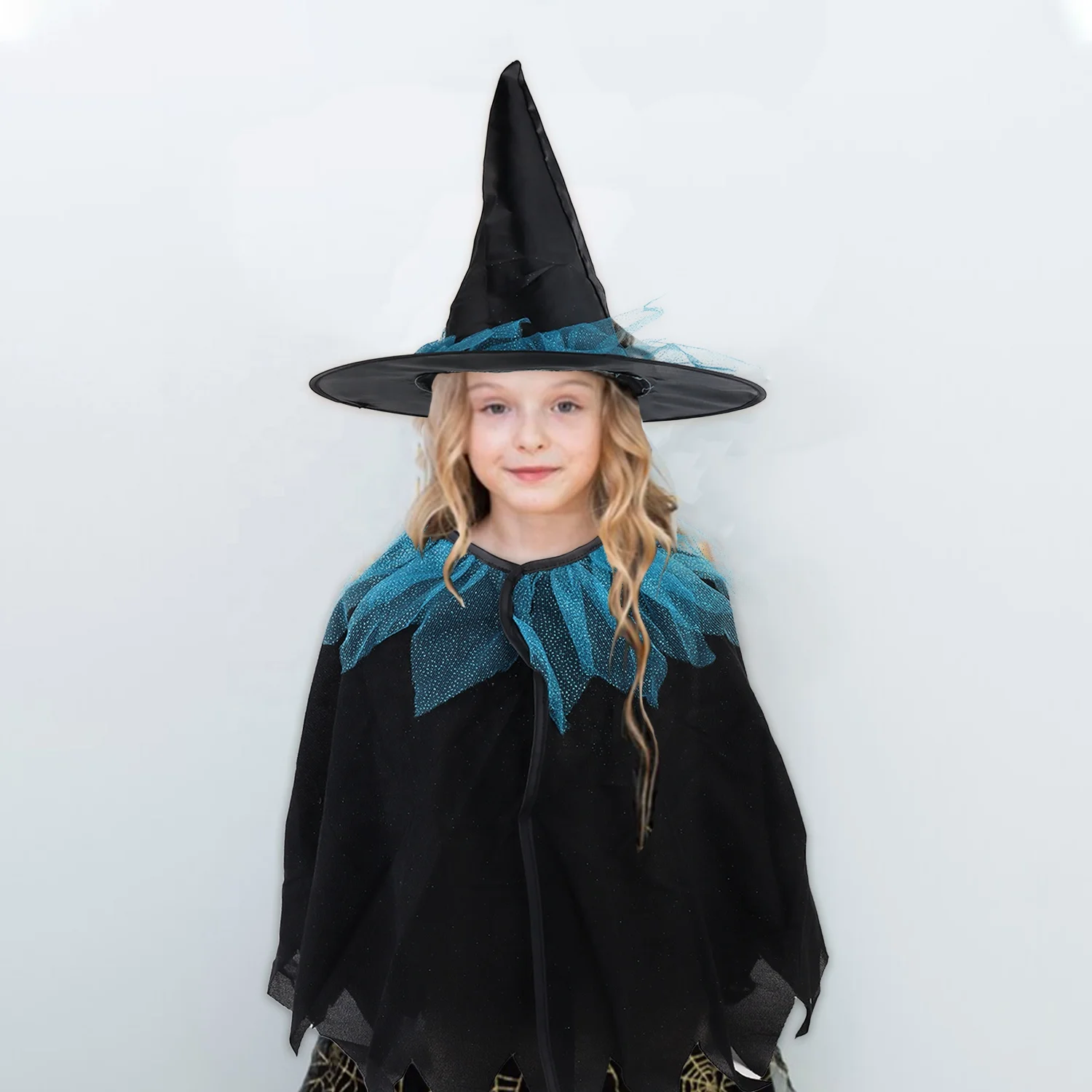 Halloween & Day of the Dead Costume Children's Witch Cape Hat Children's Black Witch Cape Hooded Flower Girl Dress Costume