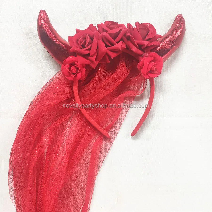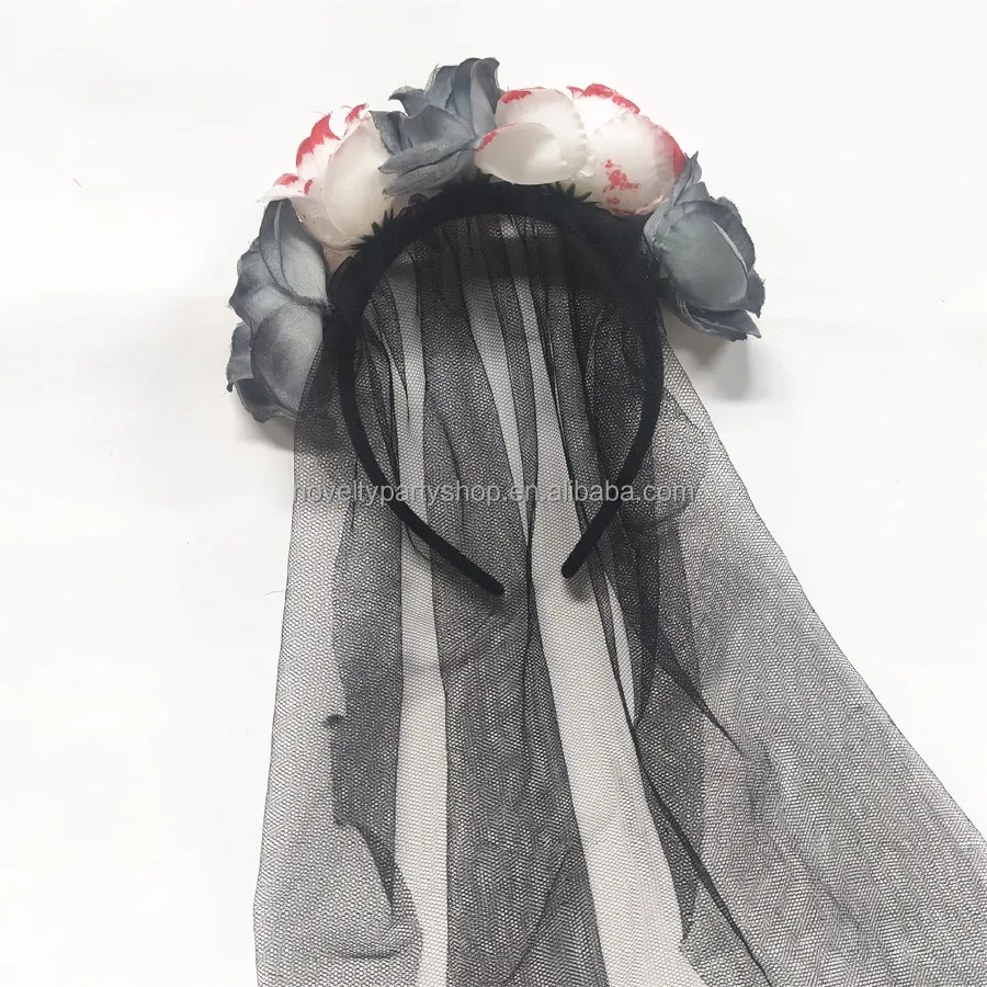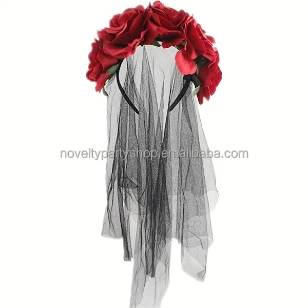 Halloween & Day of the Dead Day of the Dead Headband Dia de Los Muertos Halloween Bridal Veil Rose Crown Headgear Blood Halloween Headband