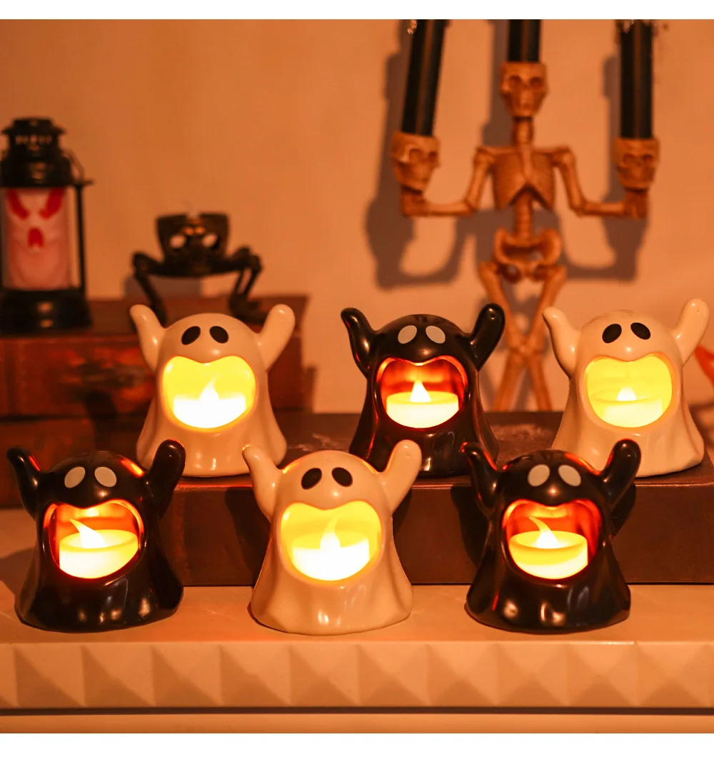 Halloween & Day of the Dead Living Room Horror Atmosphere Decoration Ghost Lights Desktop Decoration Light Emitting Diode Ghost Candle Lights