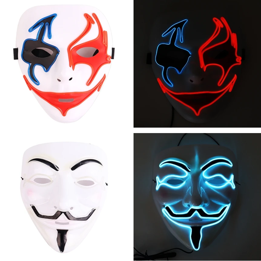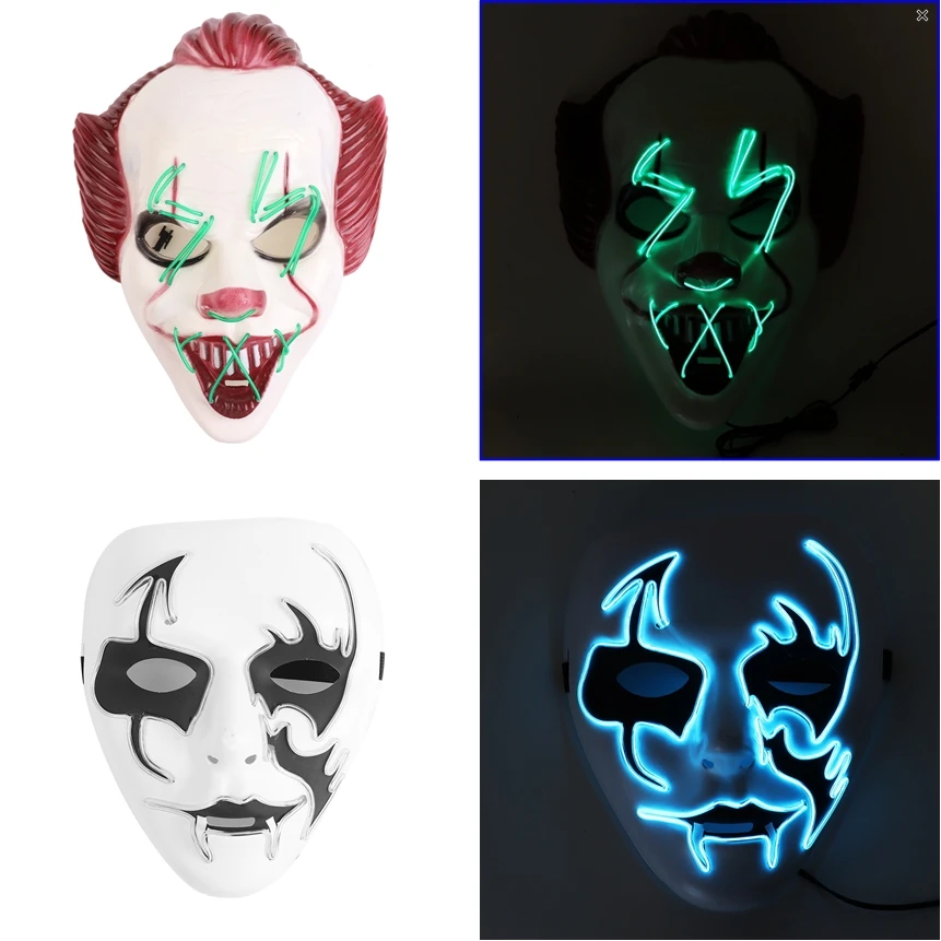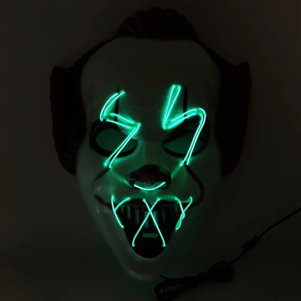 New Halloween Horror Clown Mask Masquerade Props Mask Horror Cosplay Glow Mask Party LED Facial Masks for Halloween Party