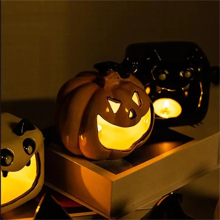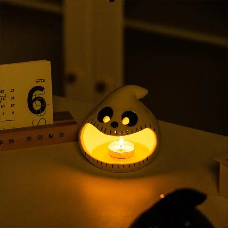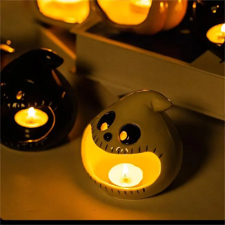 Halloween & Day of the Dead Party Decoration Multifunctional Tabletop Decoration Ghost Candlestick Ceramic Candlestick