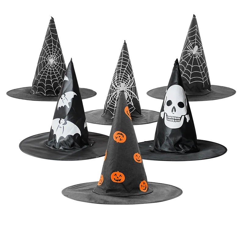 Halloween & Day of the Dead Props Hat Party Supplies Adult Child Witch Pumpkin Spider Web Pattern Halloween Black Wizard Hat
