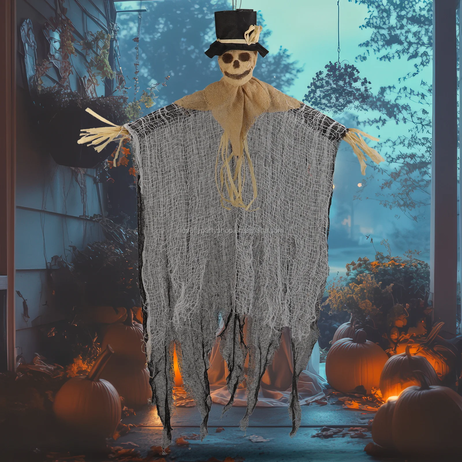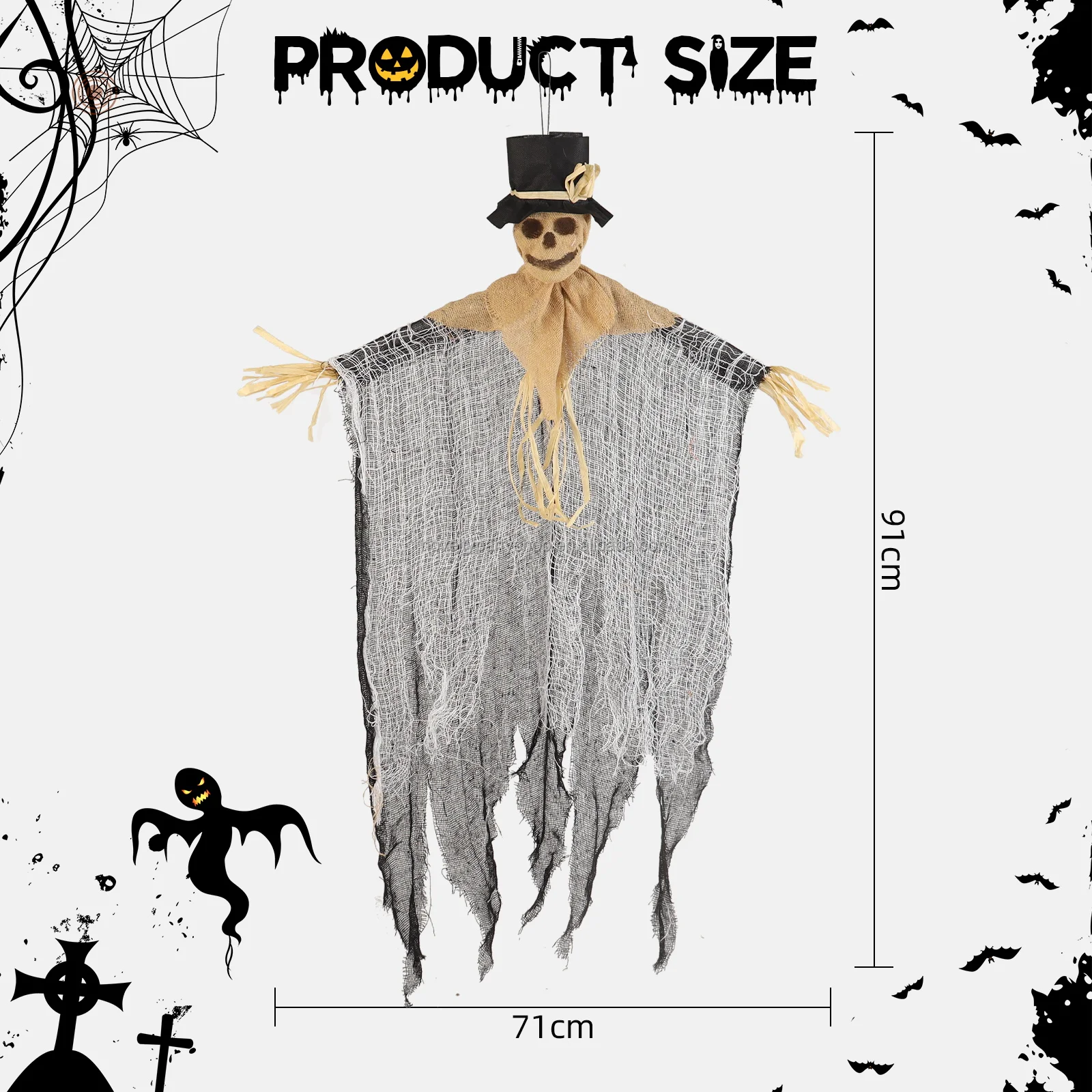Halloween & Day of the Dead Scary Halloween Scarecrow Hanging Skeleton with Runic and Hat 91 CM