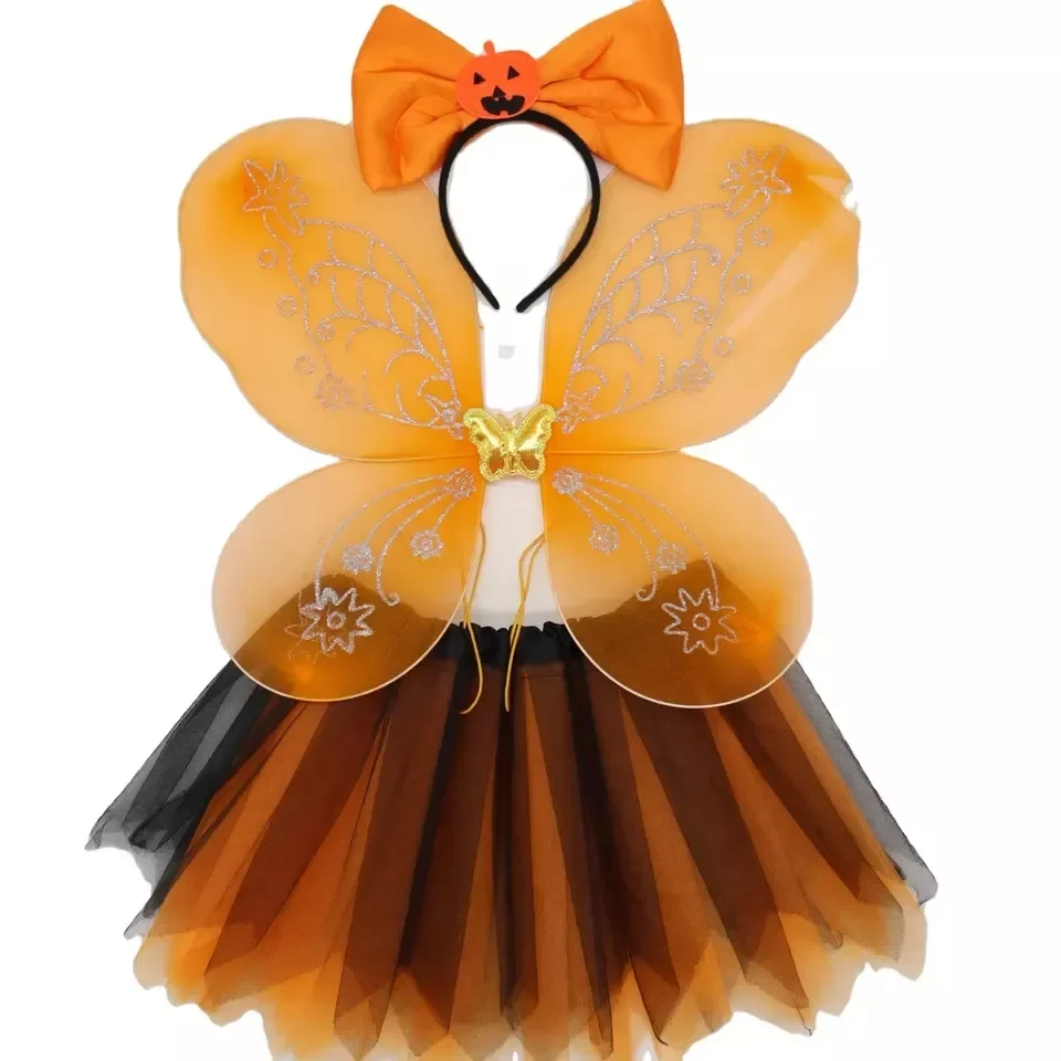 Halloween Yellow Dress Fairy Butterfly Kids Costume Tutu Skirt Wings With Headband Ballet Costume Set