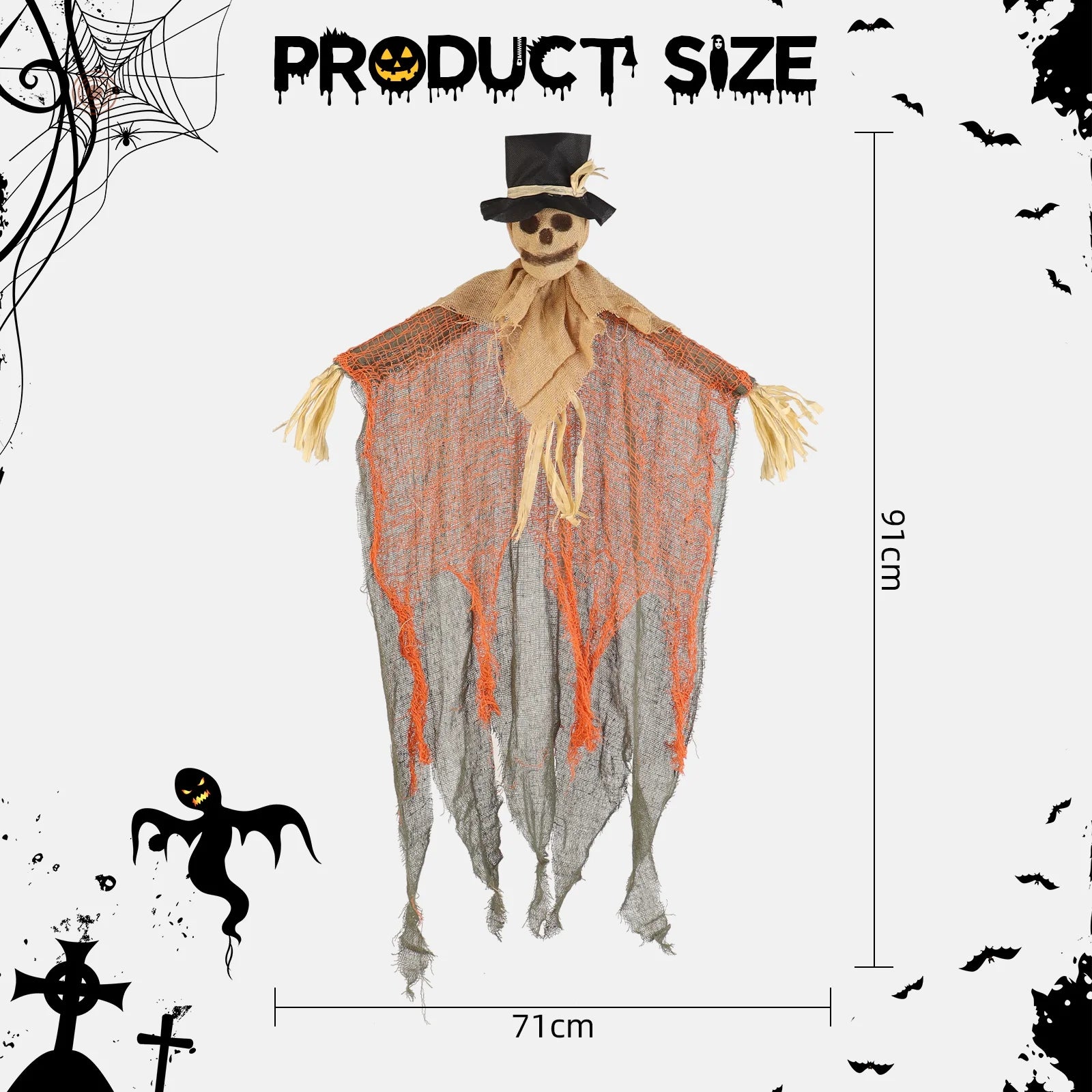 Halloween & Death Day 91cm Halloween Hanging Scary Skull with Top Hat Skeleton Pumpkin Haunted Party Decoration