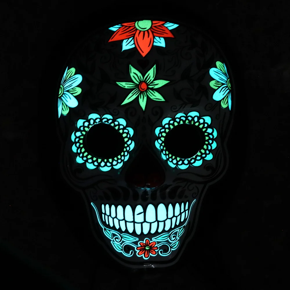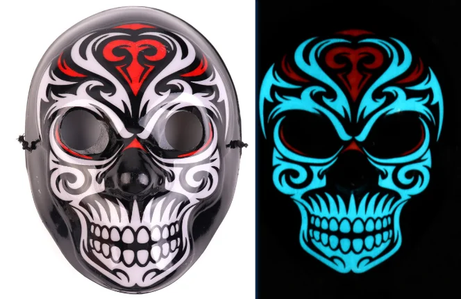 Halloween & Death Day New Halloween Ornaments Monster Glow Mask EL Mask Party Makeup Light Emitting Diode Face Reaper Mask Halloween Party