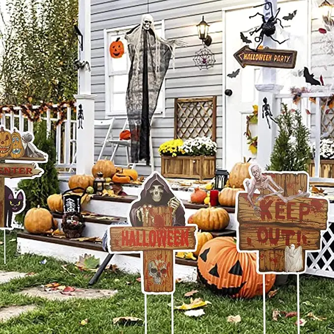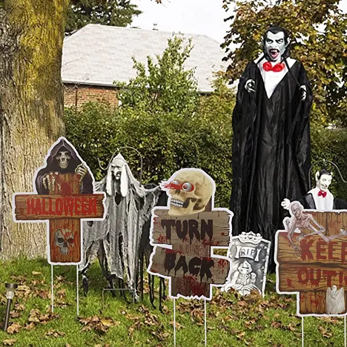 Halloween & Death Day Road Signs Custom Outdoor Decorations Bloody Horror Rippled Yard Signs Ghost Warning Pile Halloween Decorations