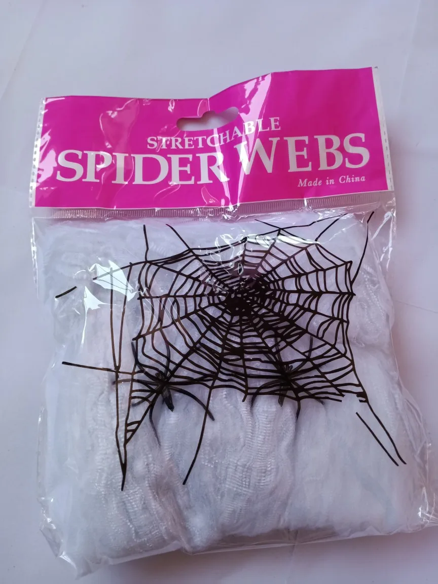Halloween & Death Day Wholesale 20G Halloween Spider Webs Stretch Cobwebs with 2 Plastic Spiders for Halloween Indoor Outdoor Decorations