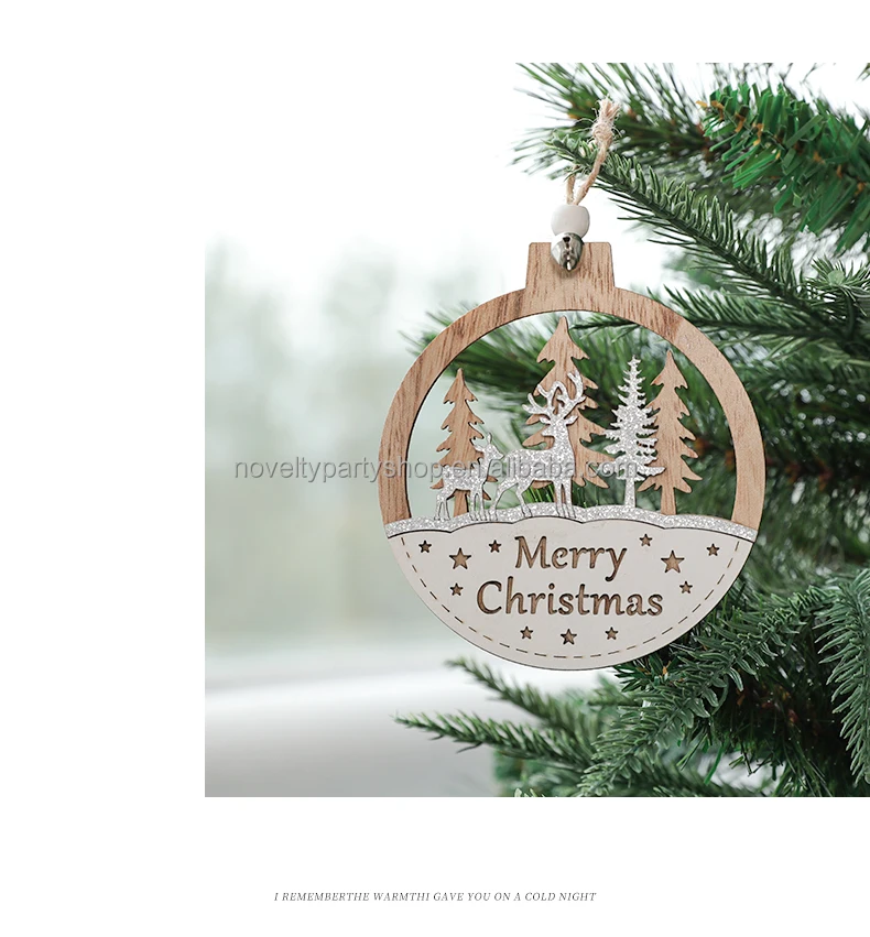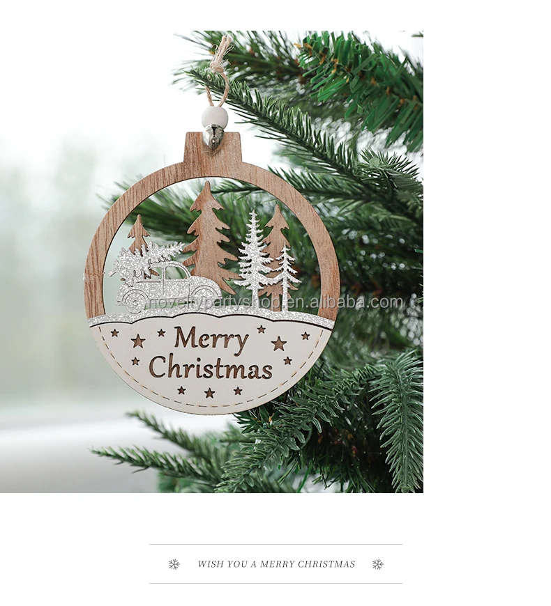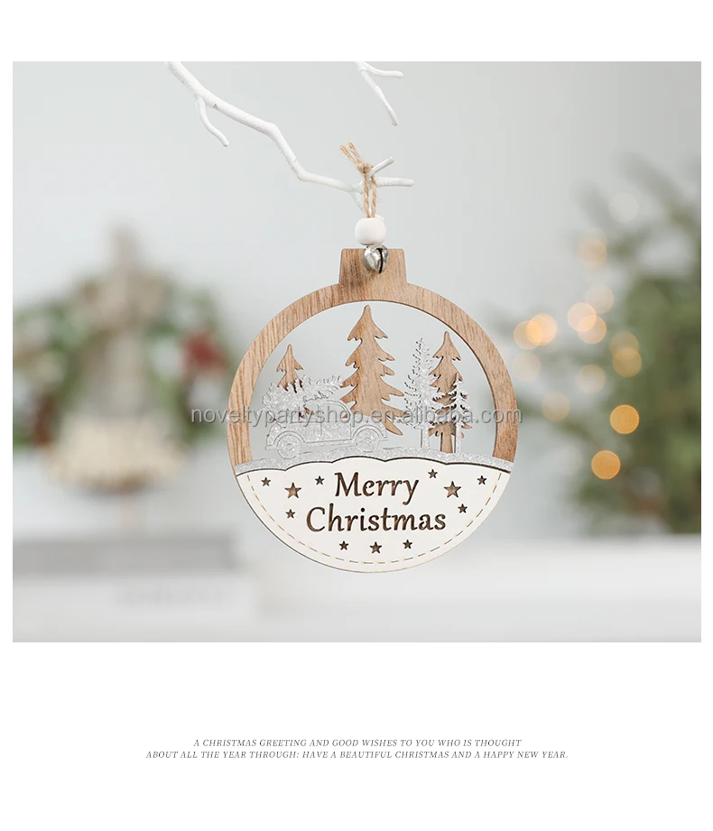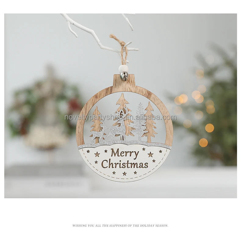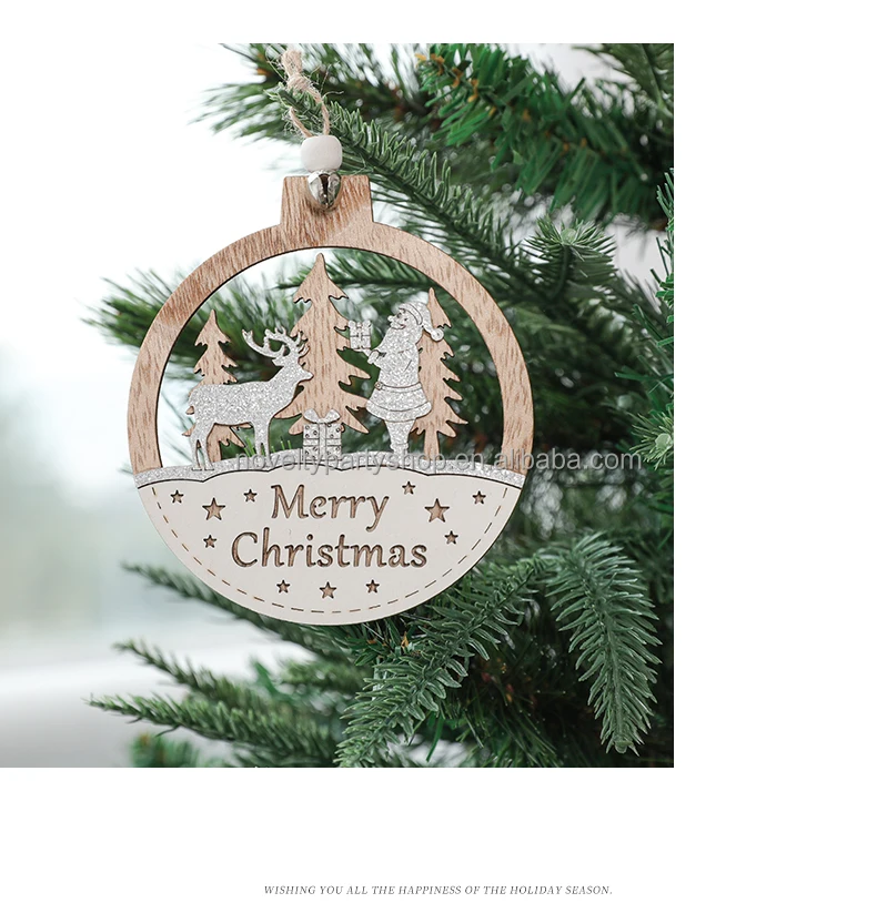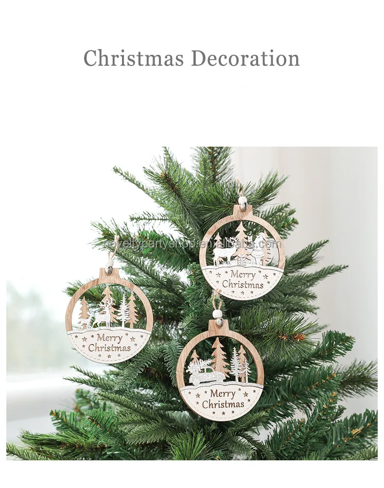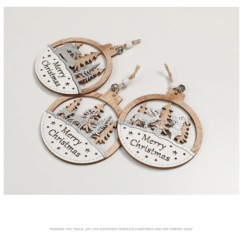 Laser 3D Printing Wood Color Christmas Wooden Holiday Home Hanging Decoration Creative Wooden Craft Christmas Tree Pendants