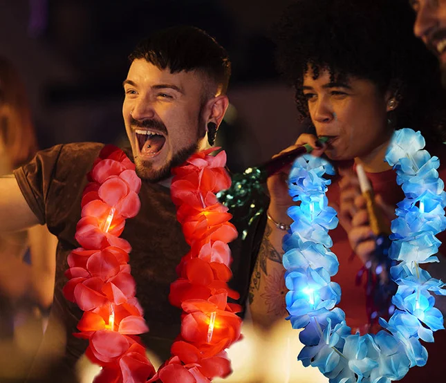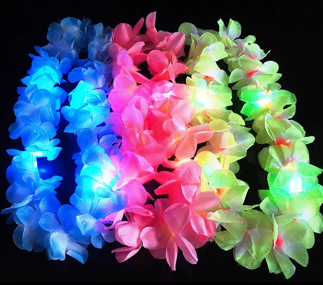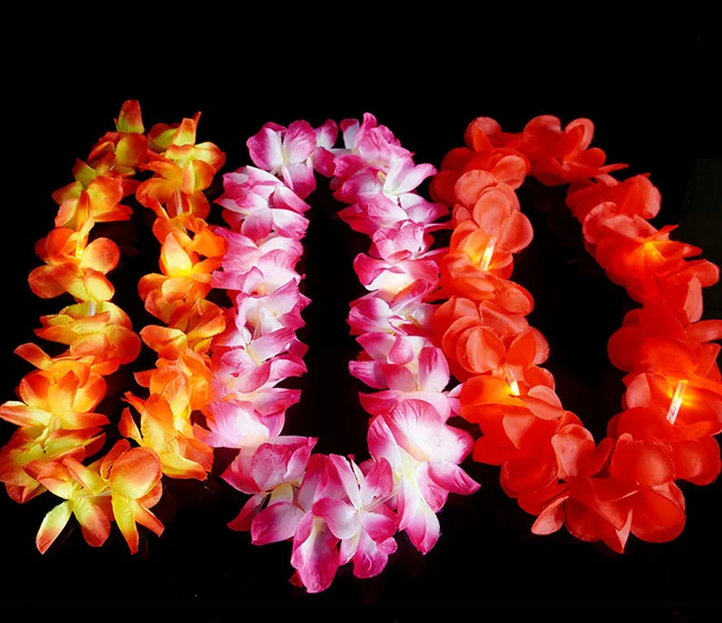 Light Up Necklace Hawaii Christmas Led Light Necklace Hawaiian Flower Lei Hula Graduation Necklace Flower Leis Garland