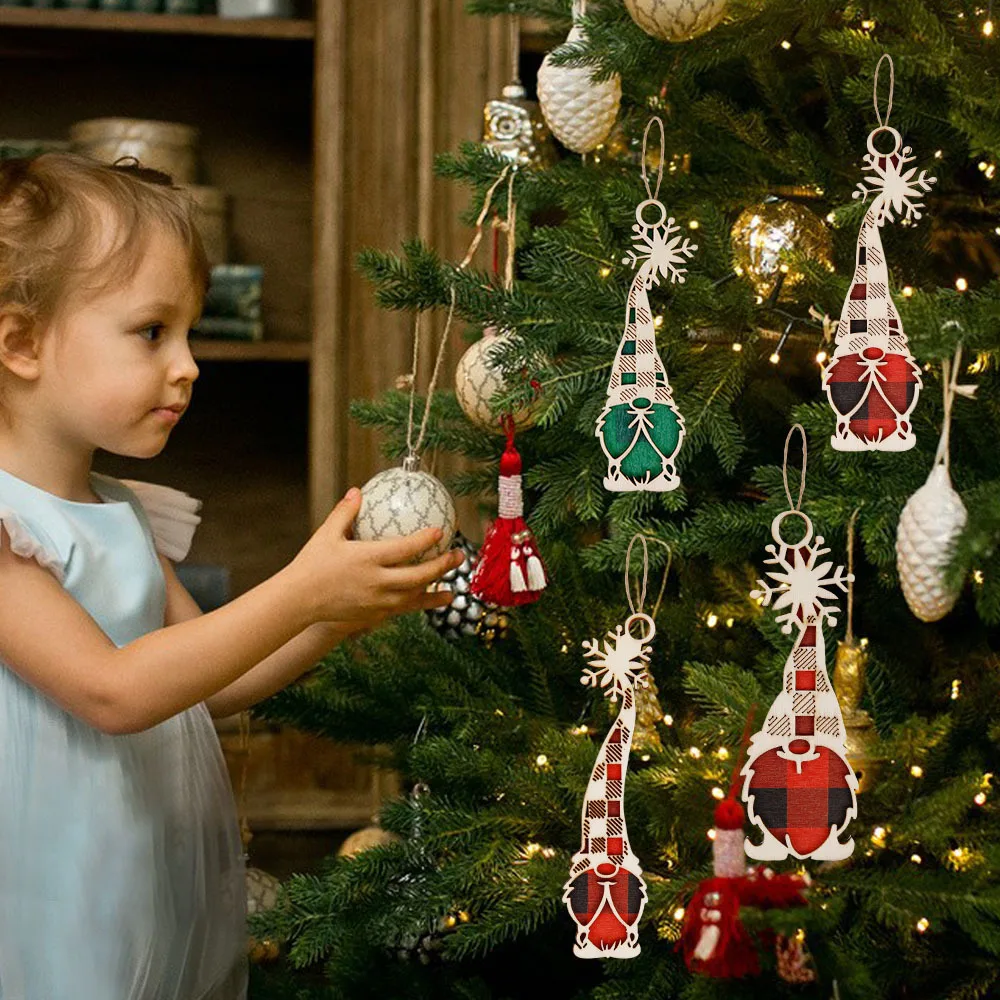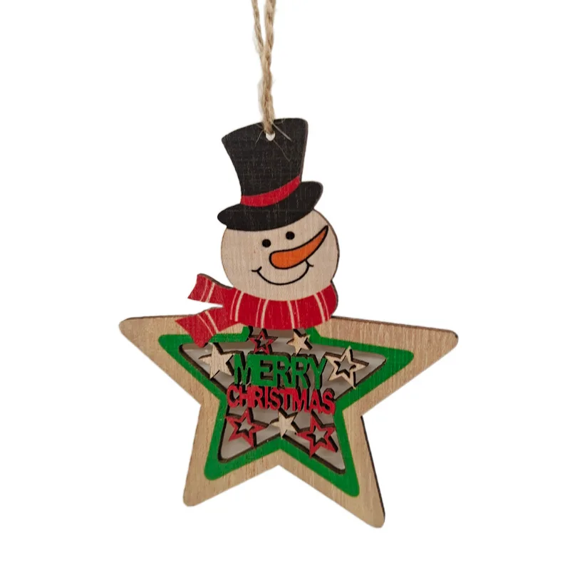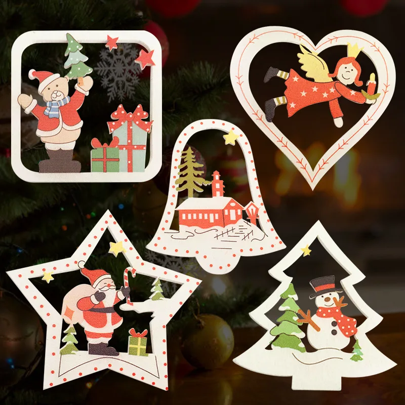 New Wooden Christmas Tree Snowman Santa Elk Hollow Pendant DIY Painted Christmas Wooden Ornament