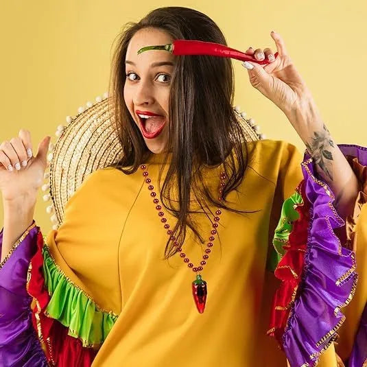 1.A festive hot pepper beaded necklace, perfect for Cinco de Mayo party decorations and celebrations.