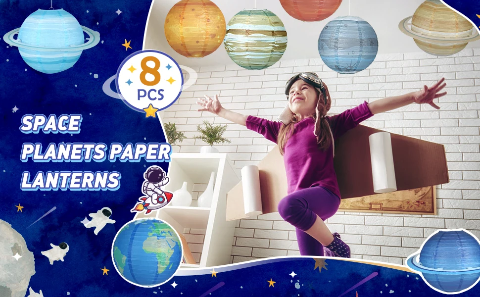 Outer Space Party Decorations Solar System Planets Lantern for Kids Space Theme Party Planet Paper Lanterns