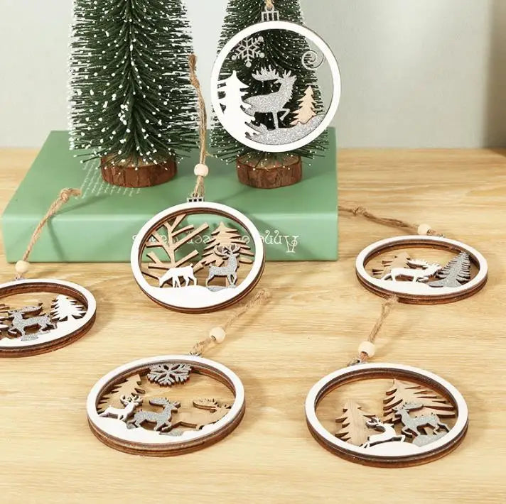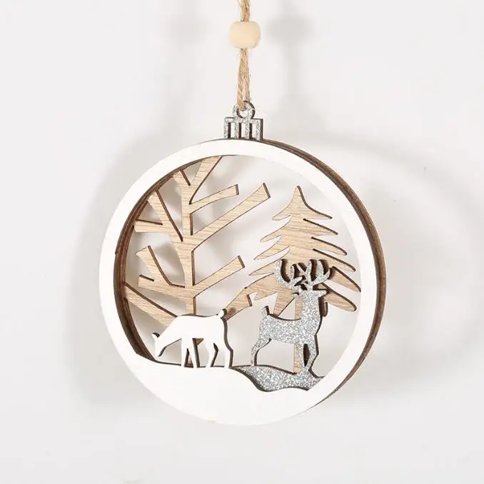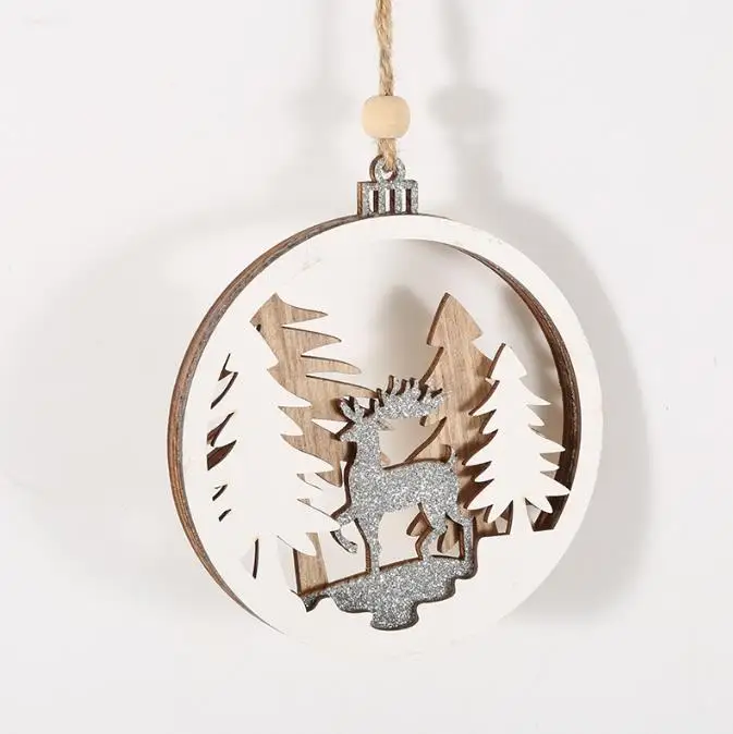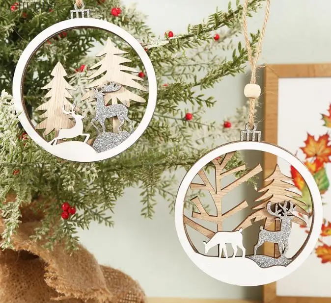 Personalized Design Round Plywood Christmas Day Souvenir Decoration Hollow Elk Kim Cong Powder Christmas Tree Pendant