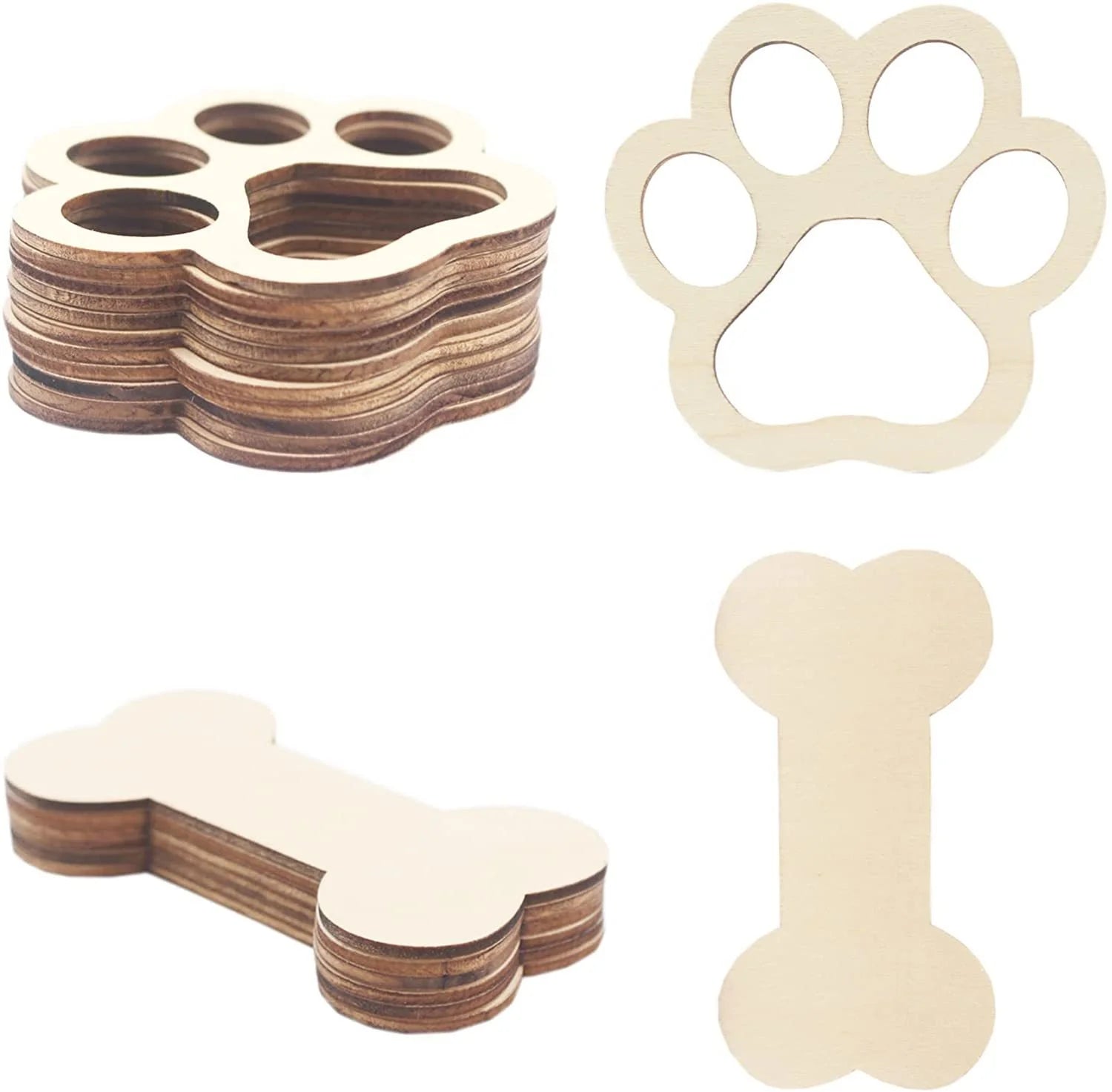 Pet Festival, Dog Bone Shaped Wood Unfinished Blank Bone Incision Laser Cutting Unfinished Paw Print Shaped Wood Incision