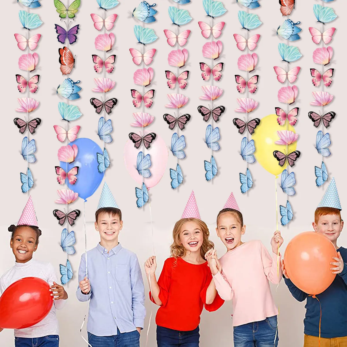 Wholesale Butterfly Theme Party Supplies Kid's Birthday Party Ornament Wall Decoration Vivid Butterfly Paper Hanging Garland