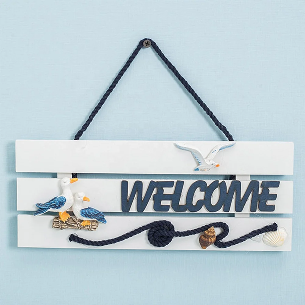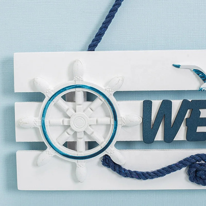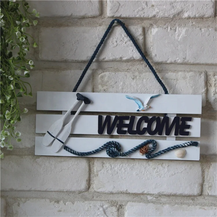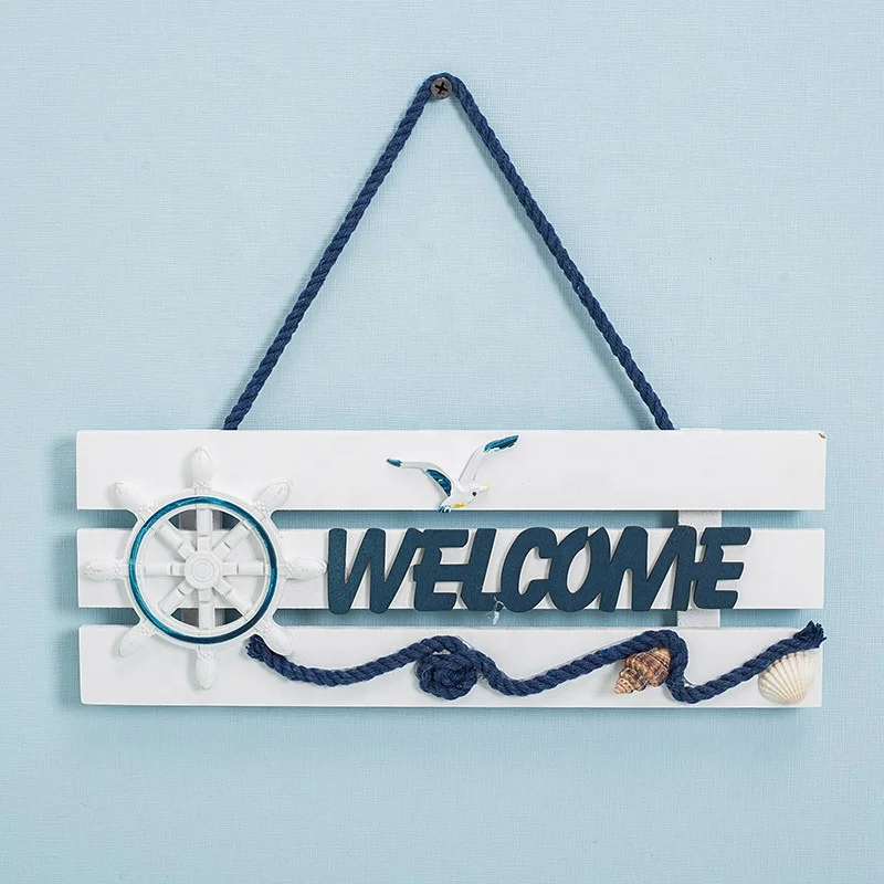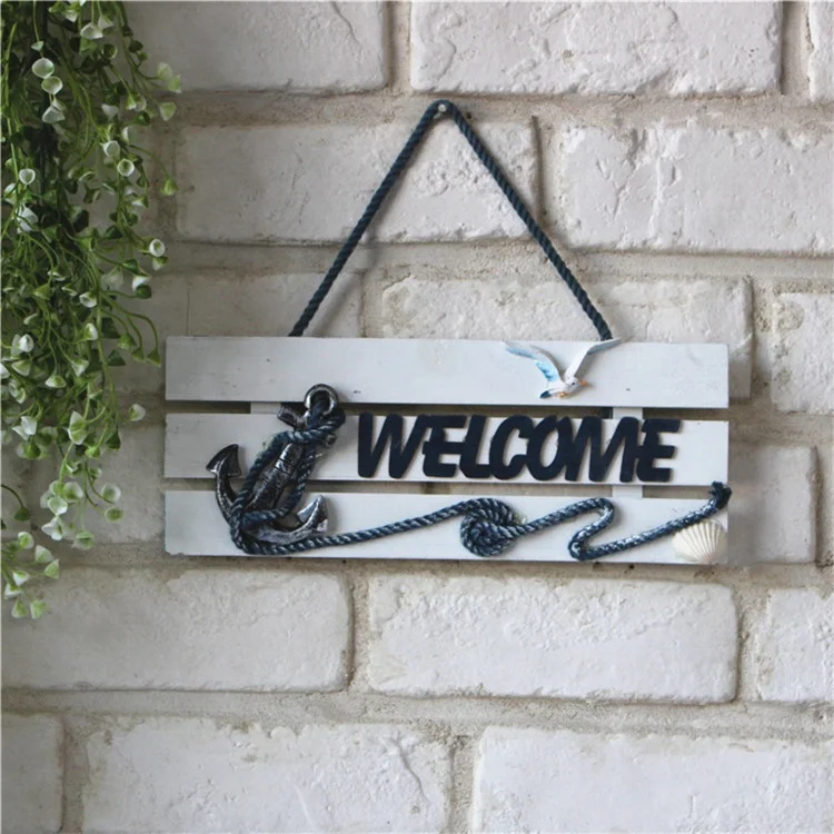 Nautical Beach Style Wood Home Wall Decoration Welcome Board Mediterranean Style Hanging Crafts for Door Garden