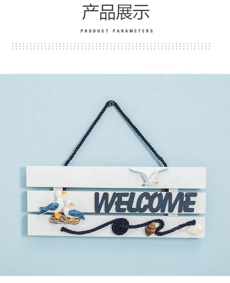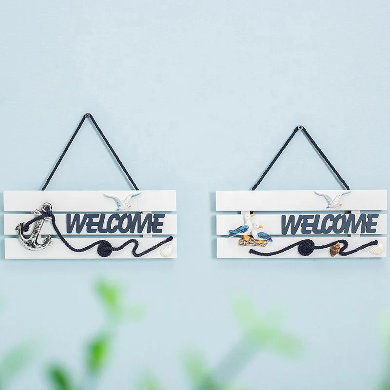 Wooden crafts, beach style wood home wall decoration welcome board Mediterranean style pendant crafts door garden