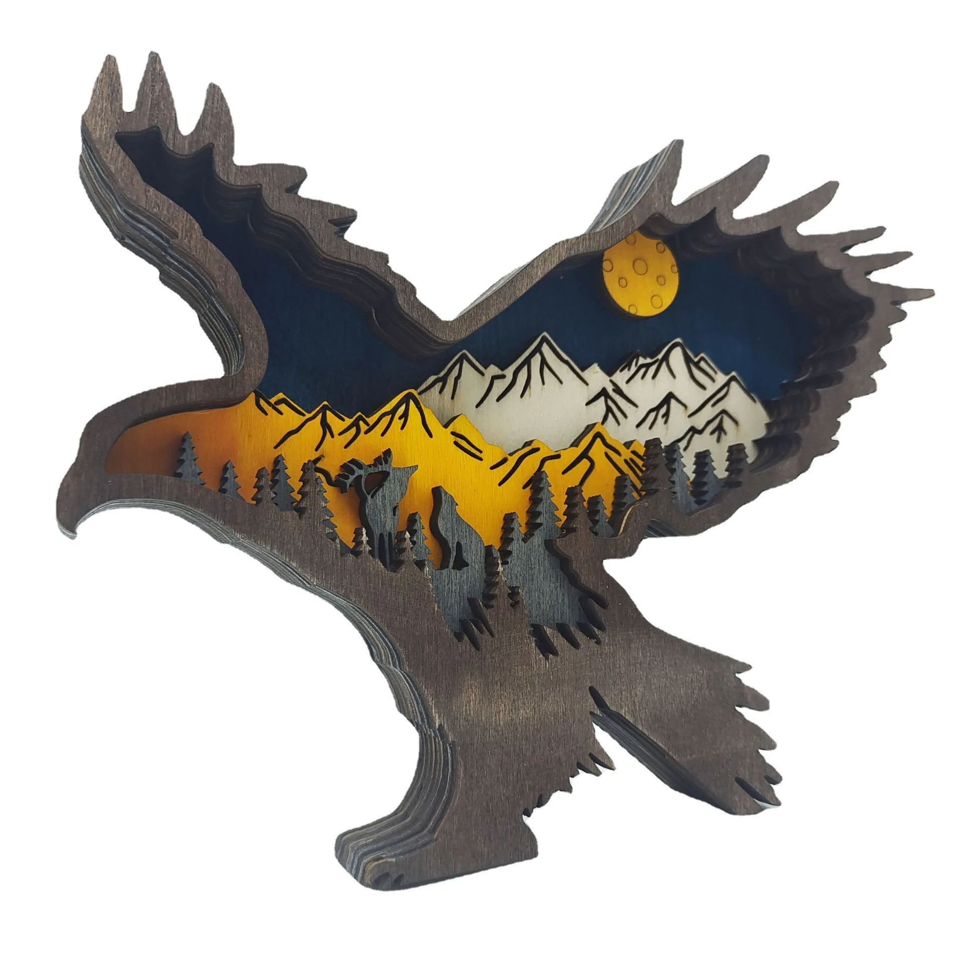 Carved Wholesale Wooden Eagle Slices Ornaments Craft Home Party Decoration Props Eagle Wood Apartement Decorations
