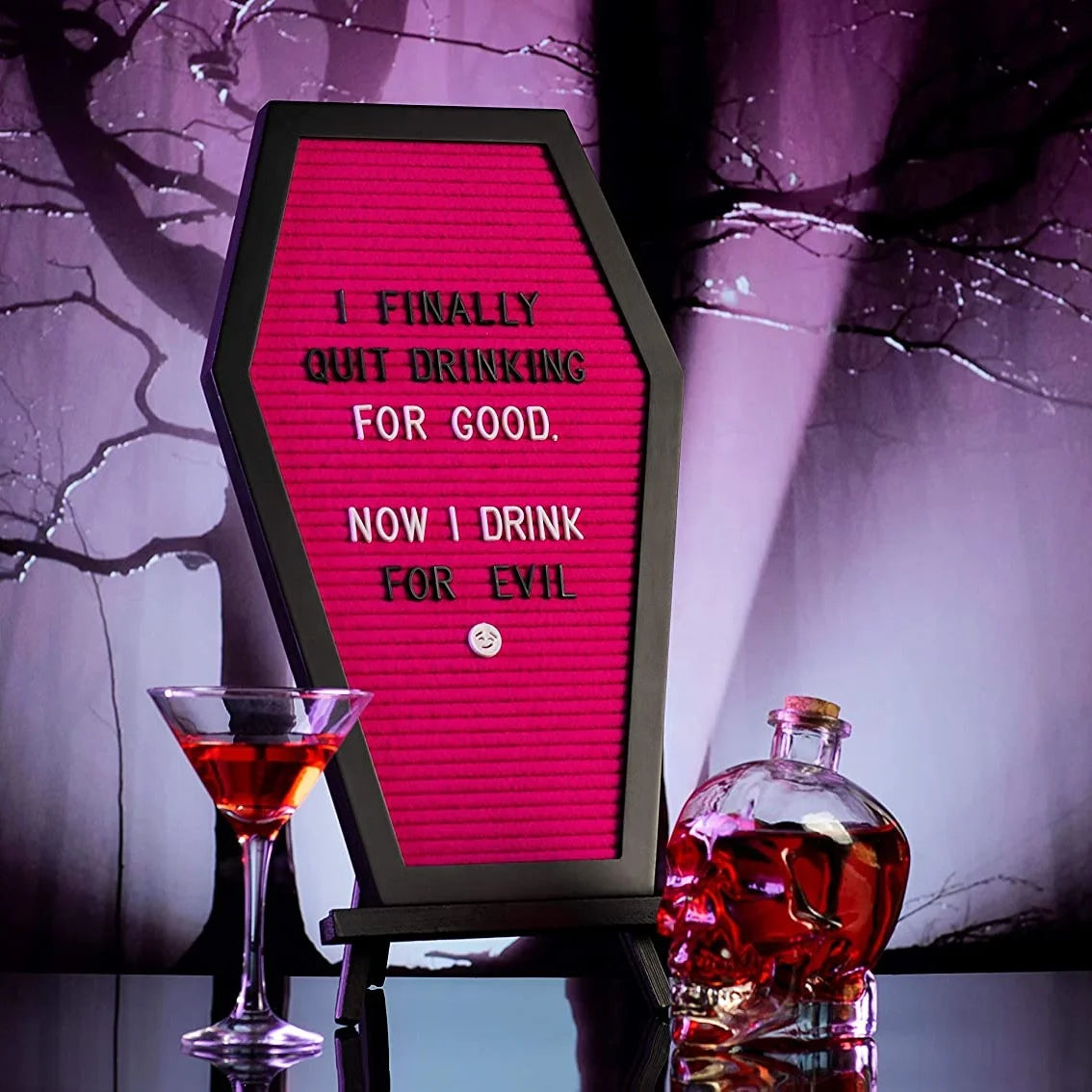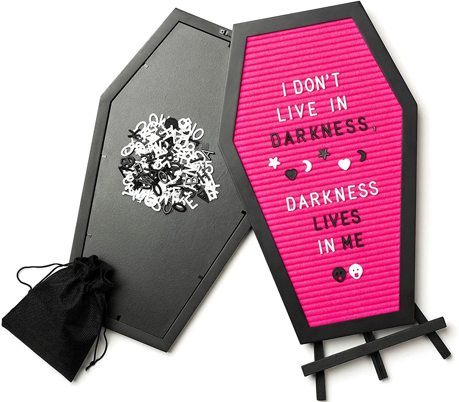 Spooky Goth Halloween Decor Message Board For Home Changeable Characters Black Stand Hanger Pink Felt Coffin Letter Board