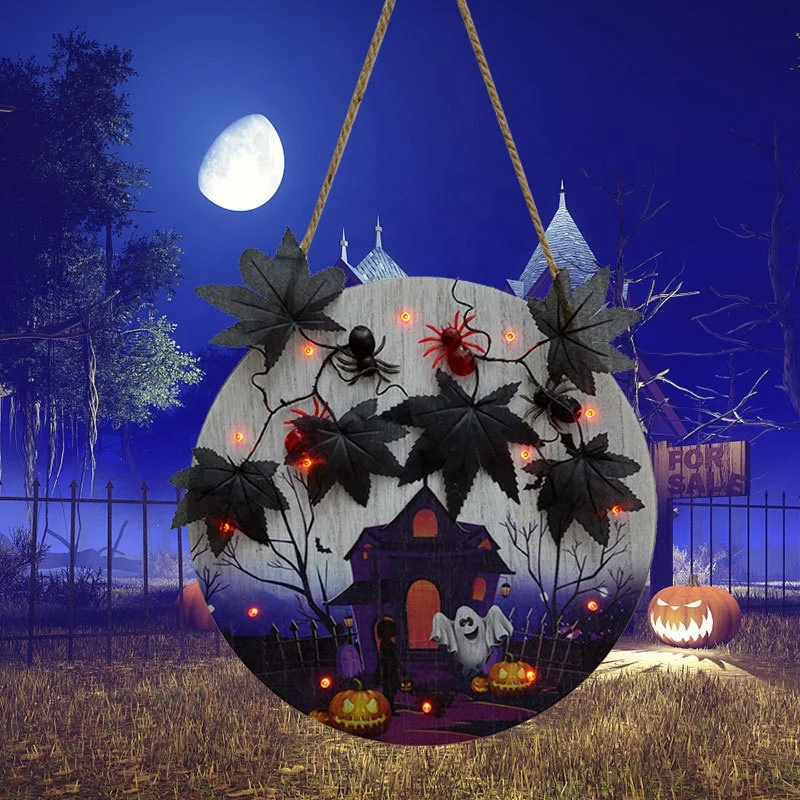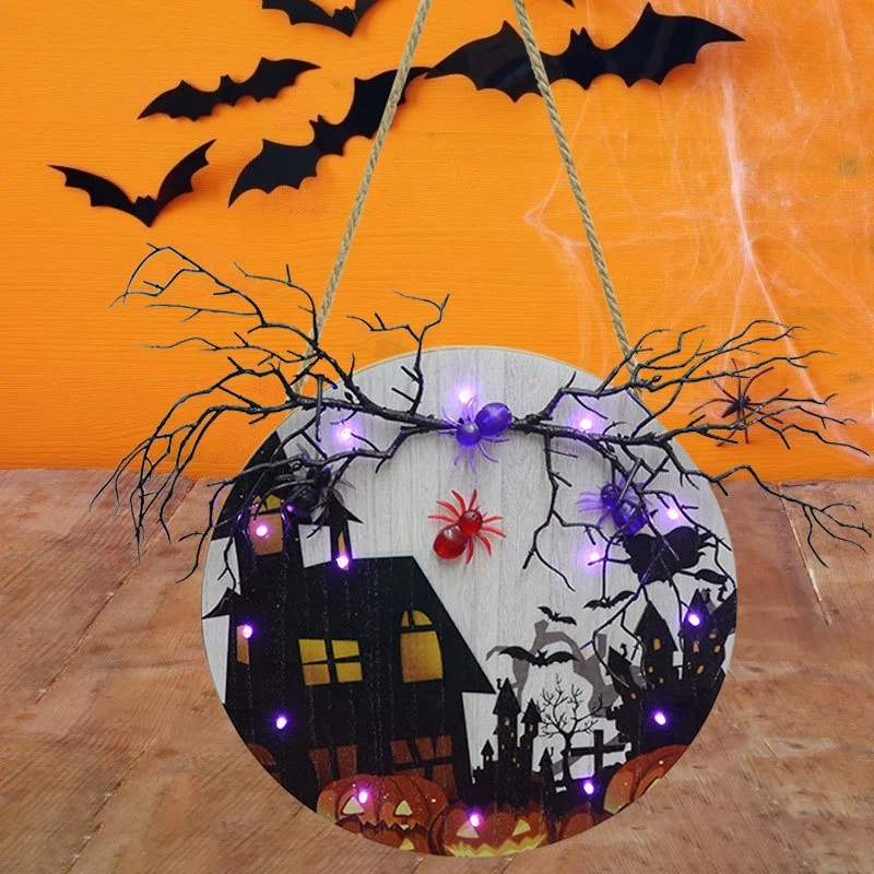 Halloween Hanging Sign With Light Farmhouse Front Whiteboard Castle Halloween Haunted House Decor Door Sign Holiday Hanging Decor