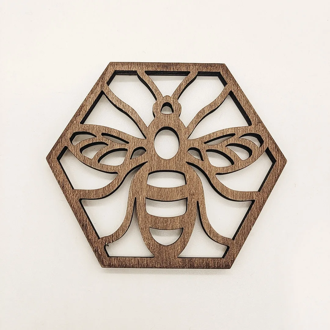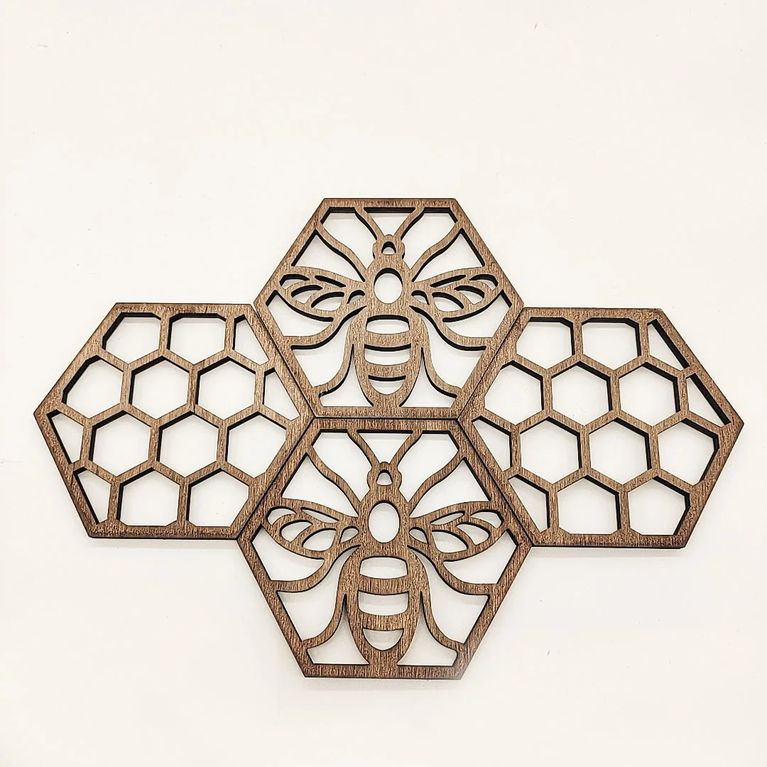 2022 New Bee Decorative Sheet Wood Creative Beehive Cup Coaster Pendant Multi-Purpose Crafts Custom Wood Ornament