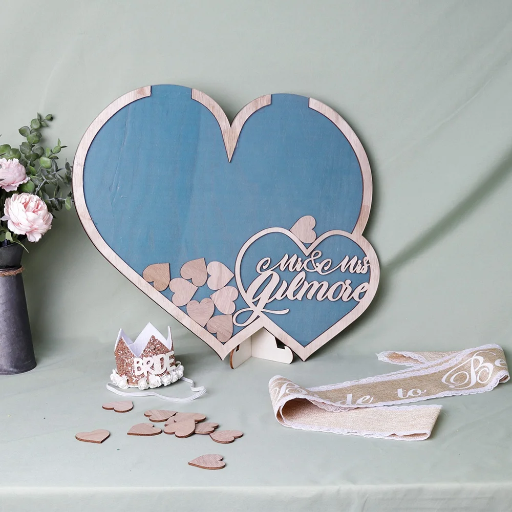 1pair guestbook stand(11.4*5.75in) 1pcs heart box(6.45*4.8*1.7in) 3pcs color pen(red,green,blue) 60pcs wooden sign-in chips:stars(1.85*1.85in) or hearts(1.65*1.65in) |