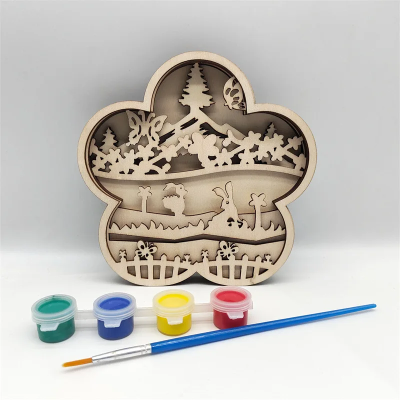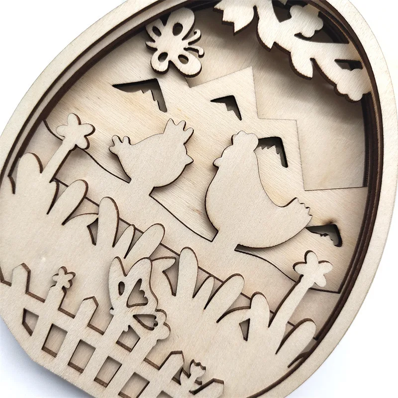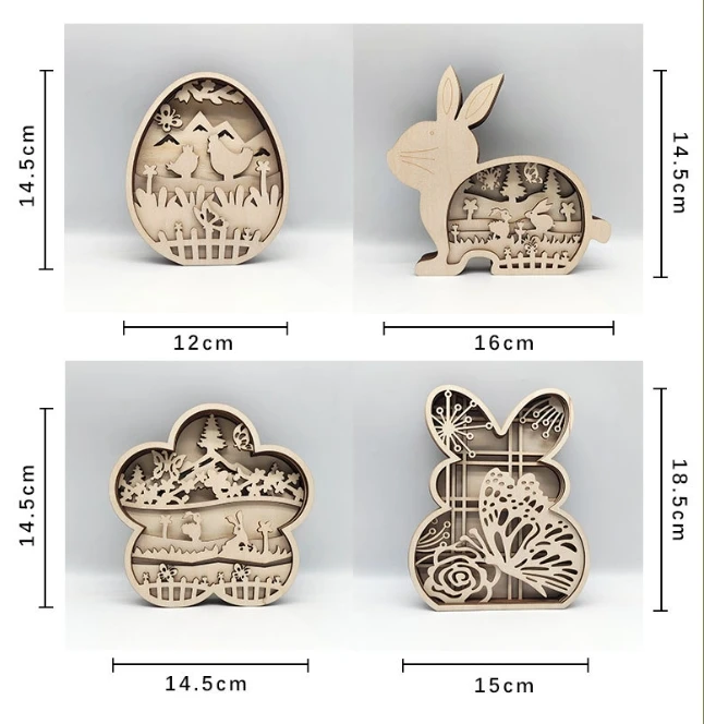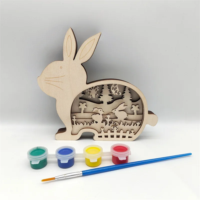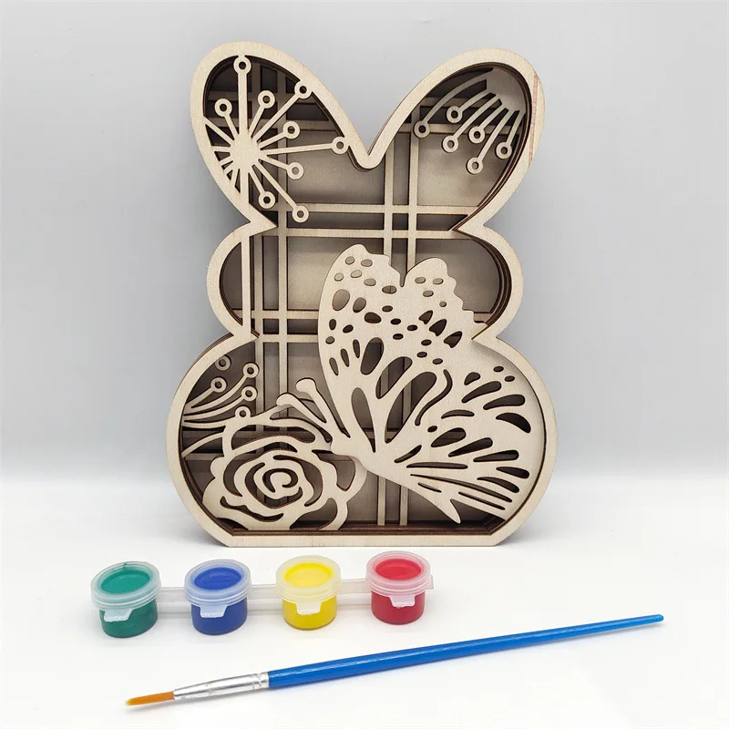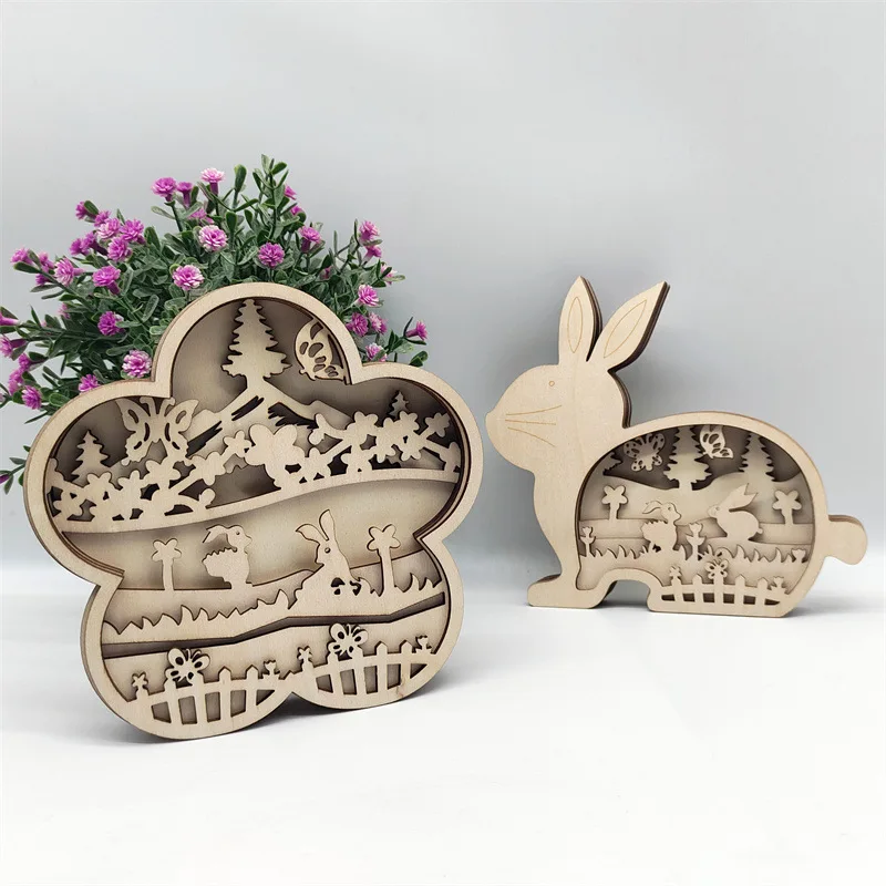 Wooden Crafts, Unfinished DIY Easter Kids Gifts Wall Art Custom Layer Woods Multi-Layer Easter Bunny Decoration Easter Bunny Laser Cut Decoration