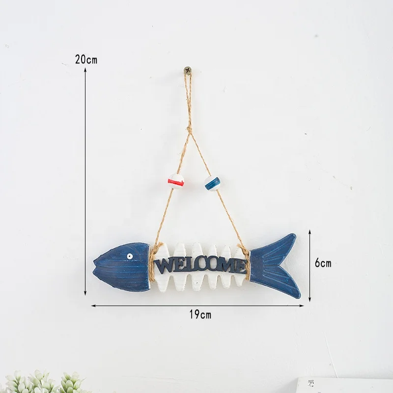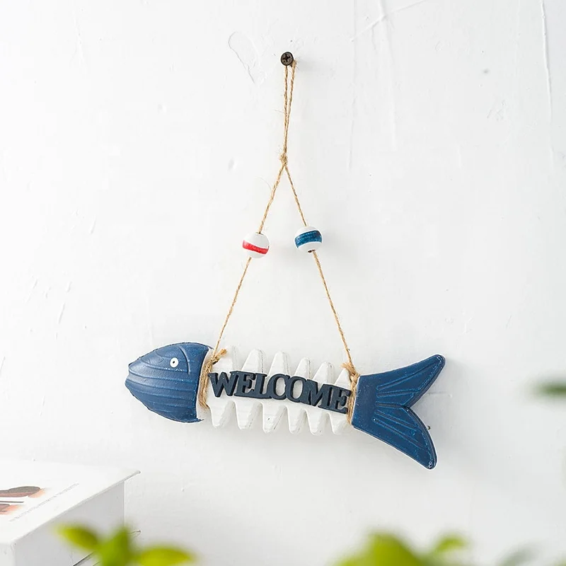 Wooden handicrafts, nautical wooden fish welcome skeleton wall hanging ornaments home door decoration gifts hanging retro wooden plate decoration