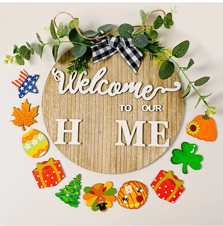new arrival removable round farm house door decorations Harvest Festival welcome wooden sign