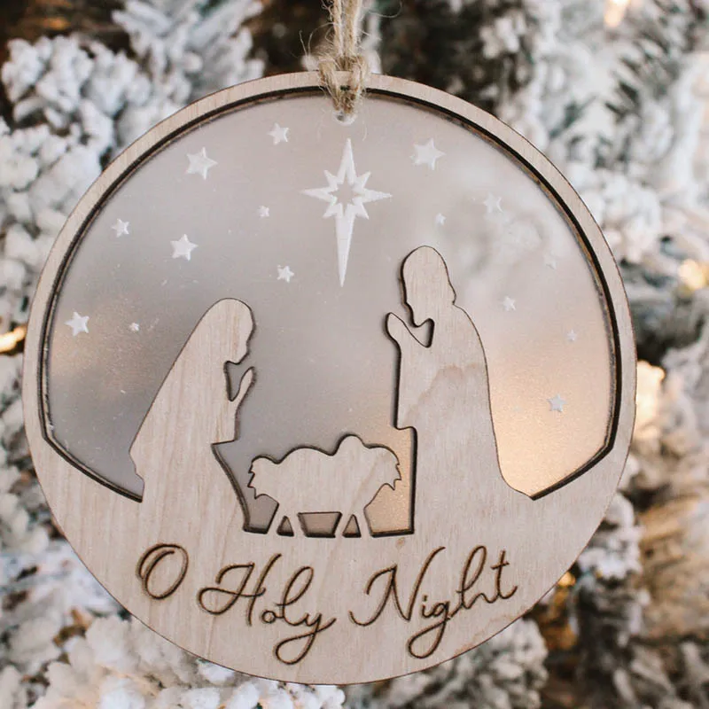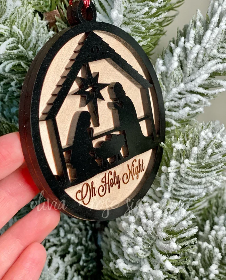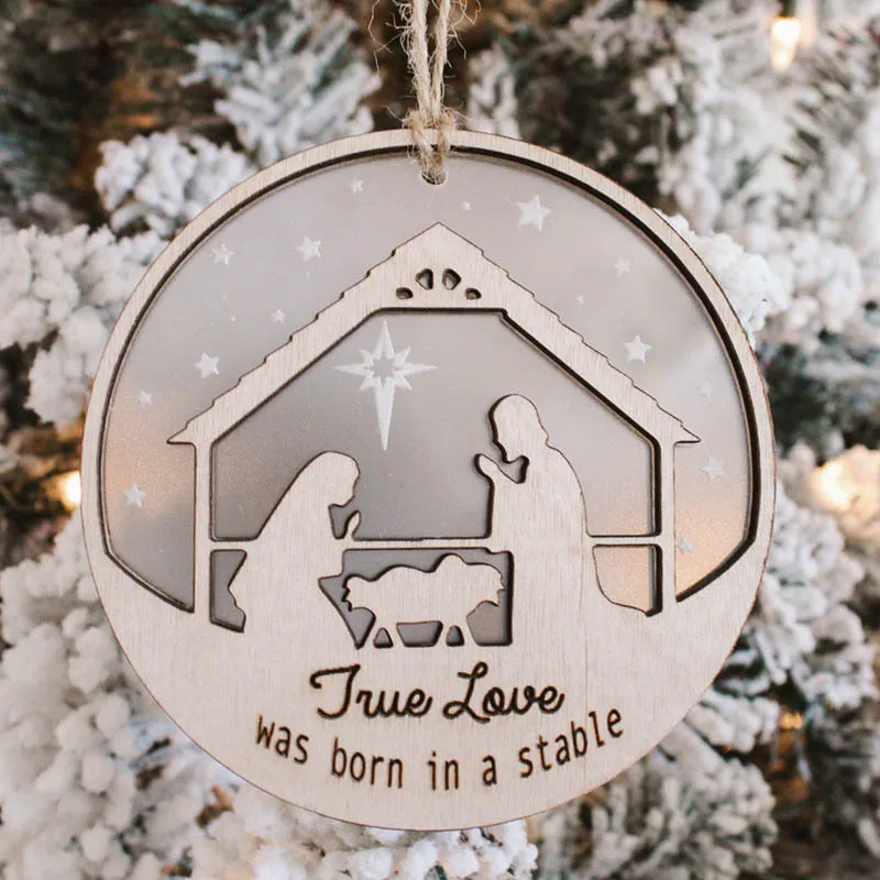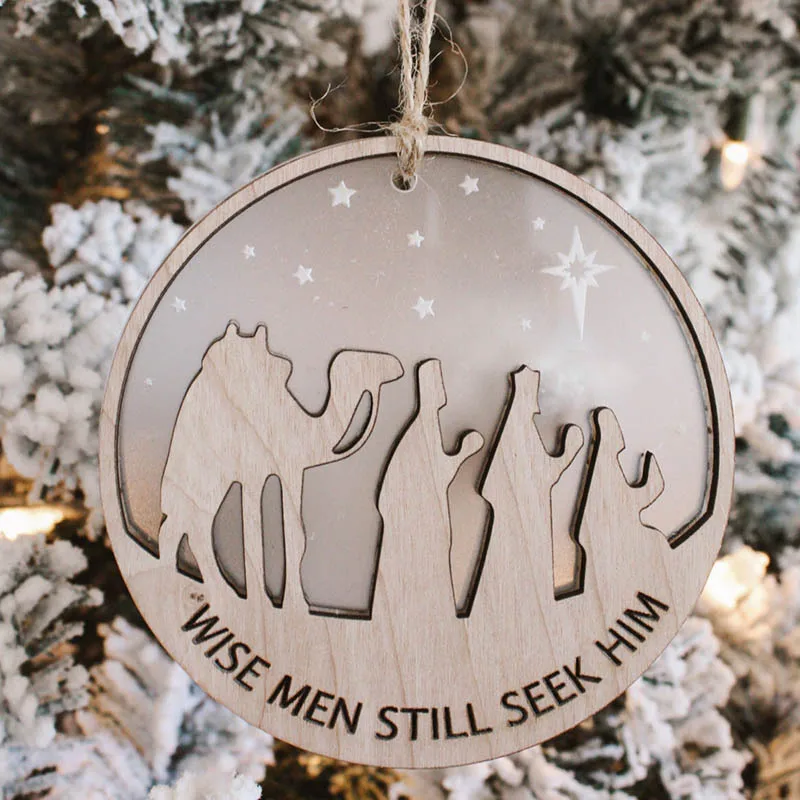 Wooden silent night Christmas tree decoration handmade 2 layer wise man Christmas scene Christmas pendant