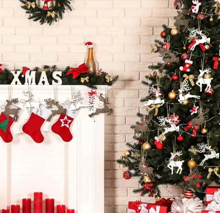 12 peças de logotipo personalizado, novidade, presentes para festa de Natal, suprimentos para decoração de parede de casa, árvore de Natal, pingentes de rena de madeira compensada