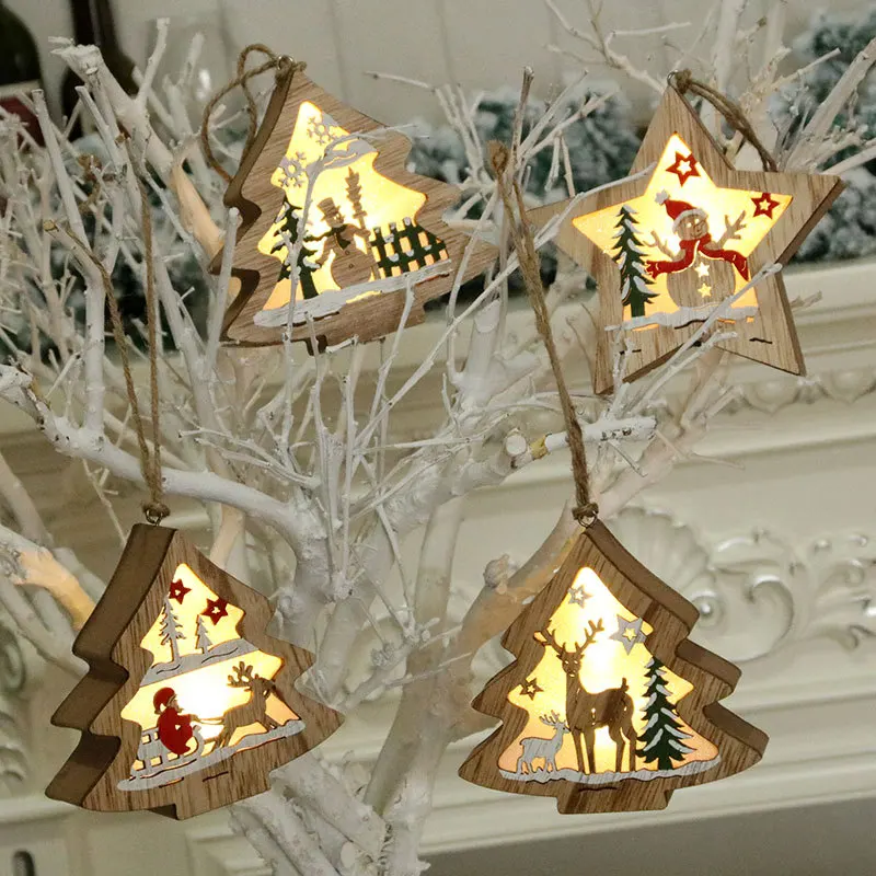 2020 nova chegada decoração de Natal pingente luminoso de madeira presentes de Natal para crianças decoração de árvore de Natal pingente