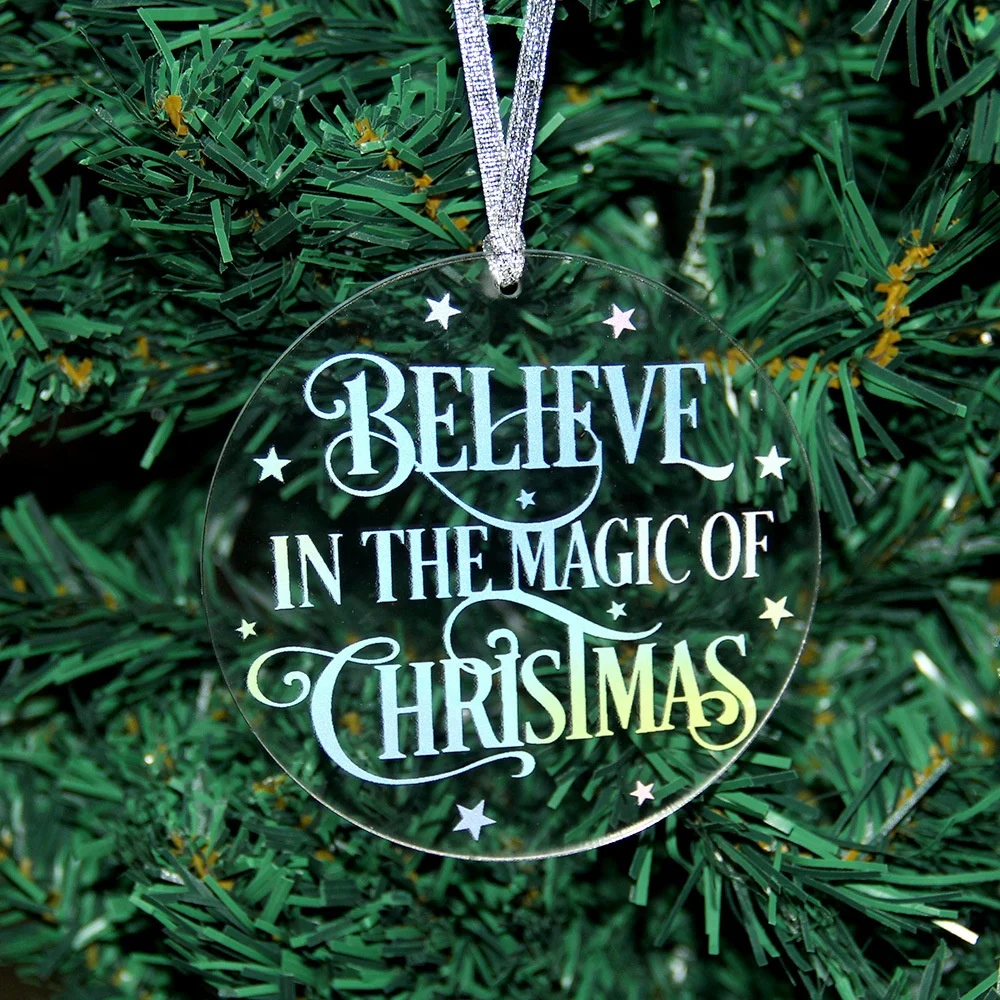 Acredite em decorações mágicas de acrílico para o Natal, decorações personalizadas para árvores de Natal, presentes de Natal para a família