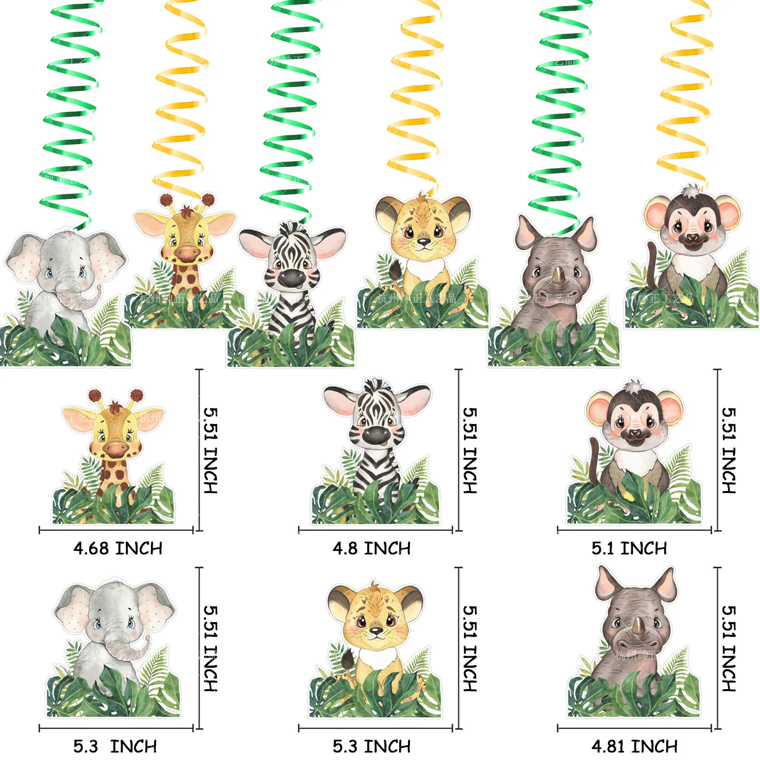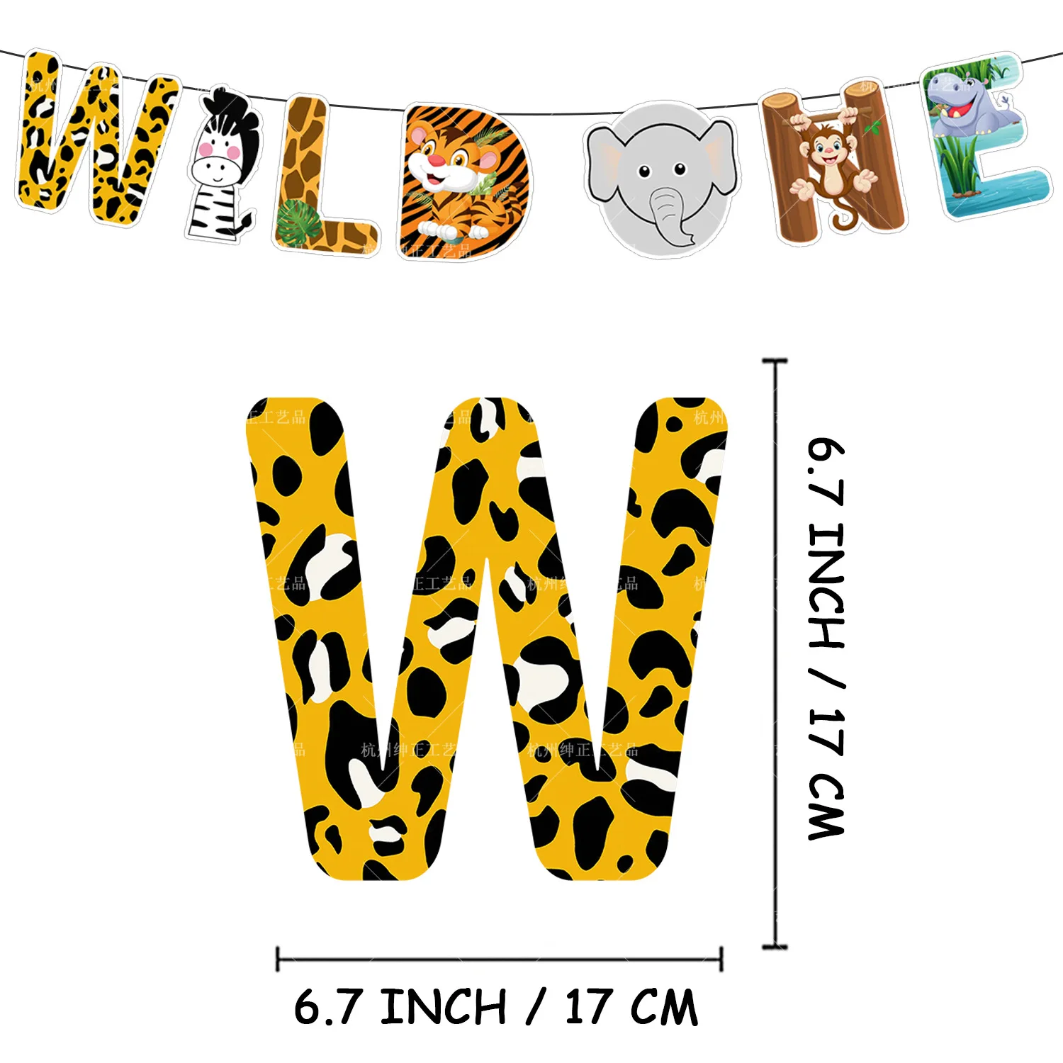 Conjunto temático de animais da selva, feliz aniversário para bebês, topo de bolo de papel, letras, faixa, balão, festa, decoração de aniversário