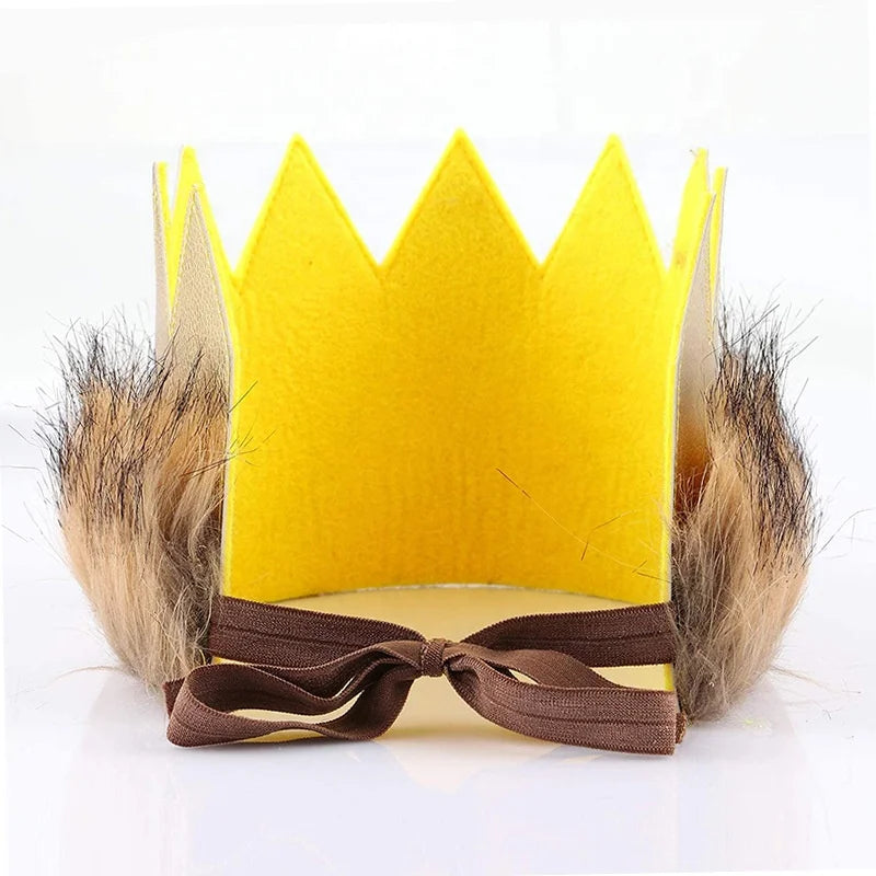 Novidade festa 1º aniversário coroa feltro pelúcia leão vestir chapéu e cauda lembrança feliz aniversário presente festa infantil chapéu