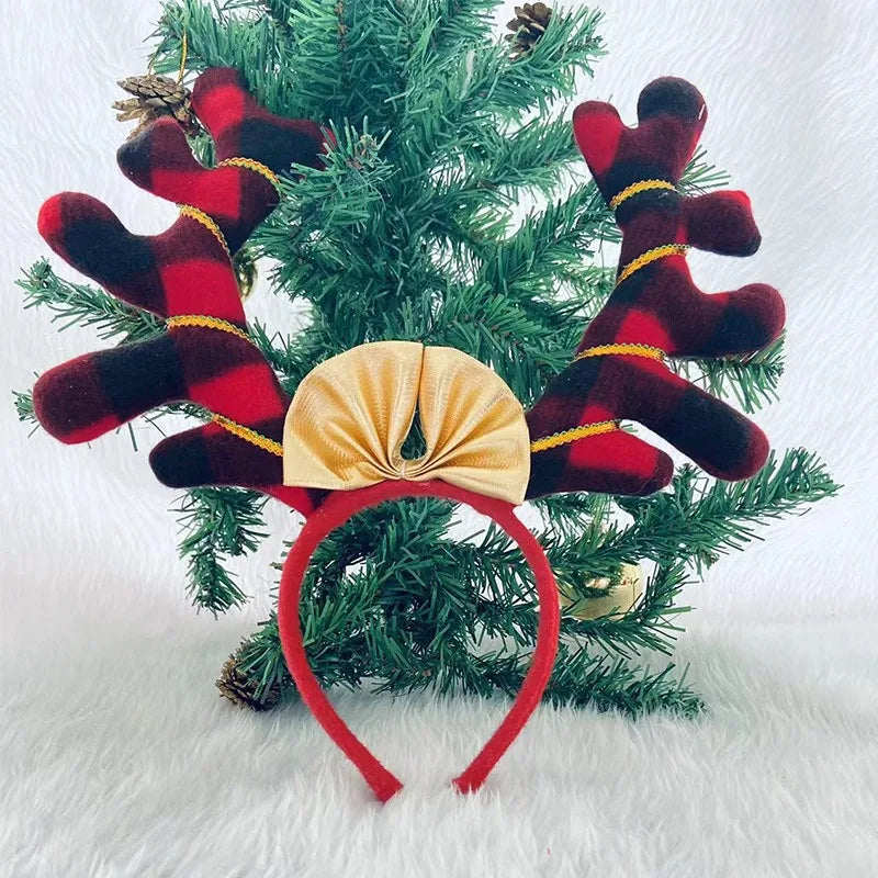 Enfeites de Natal para crianças e meninas, faixa de cabeça com chifres de alce, acessórios de cabelo de plástico dourado