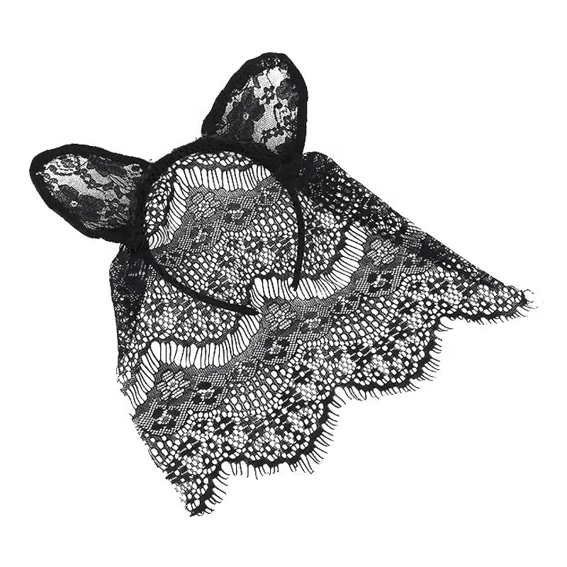Páscoa e Ação de Graças 3 Fantasias Acessórios para Cabelo Orelhas de Gato Sexy Máscara de Véu de Renda Preta Tiara de Halloween
