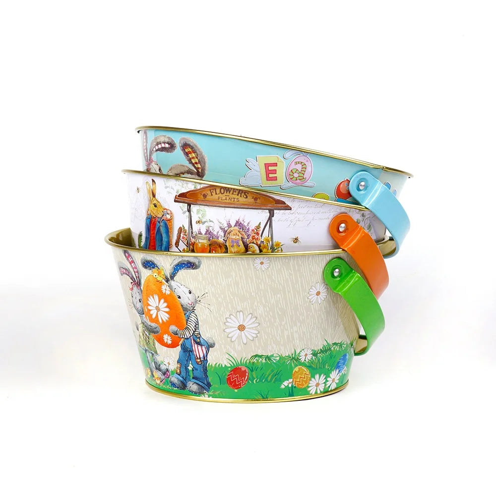 mini balde de lata em forma de coelho da Páscoa escorregadio
